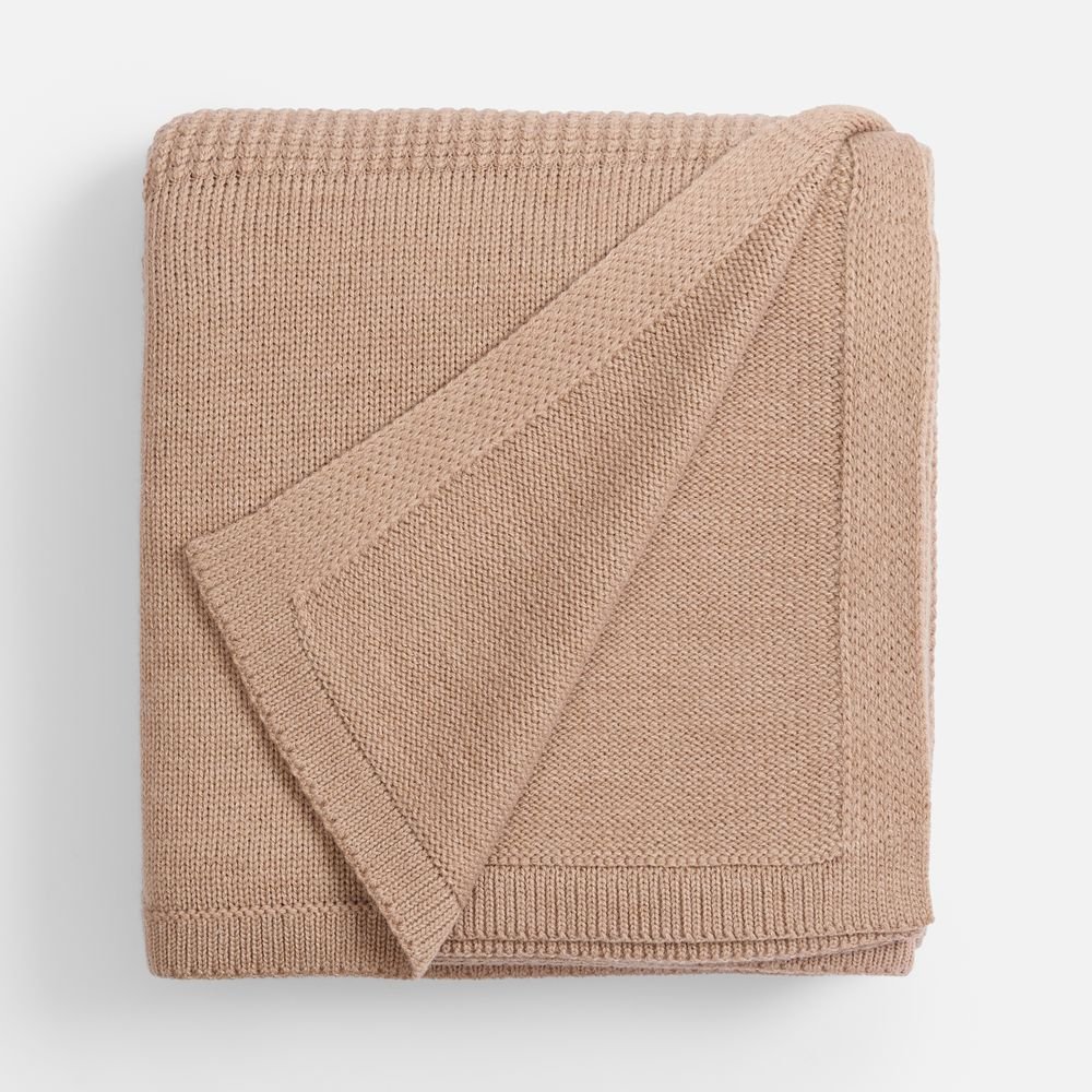 Плед Voyage соткан из мягкого сочетания шерсти и акрила — нежный, теплый и невесомый, он словно создан для уютных вечеров. Кнопка позволяет превратить плед в элегантную накидку, когда воздух становится прохладнее.