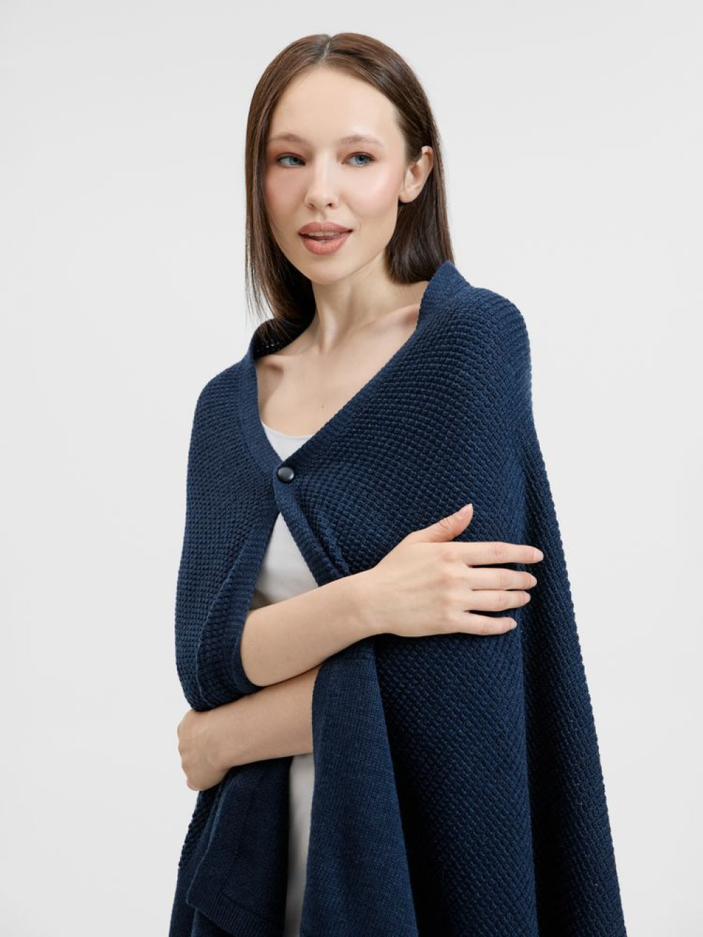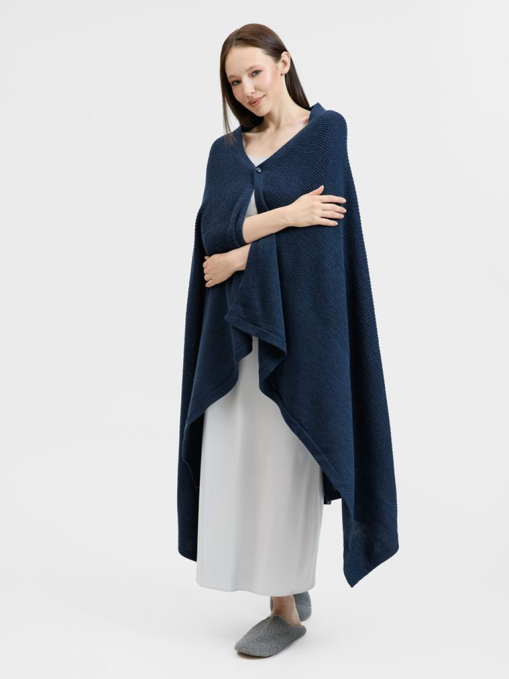 Плед Voyage соткан из мягкого сочетания шерсти и акрила — нежный, теплый и невесомый, он идеален для уютных вечеров. Кнопка позволяет превратить его в элегантную накидку, когда воздух становится прохладнее.