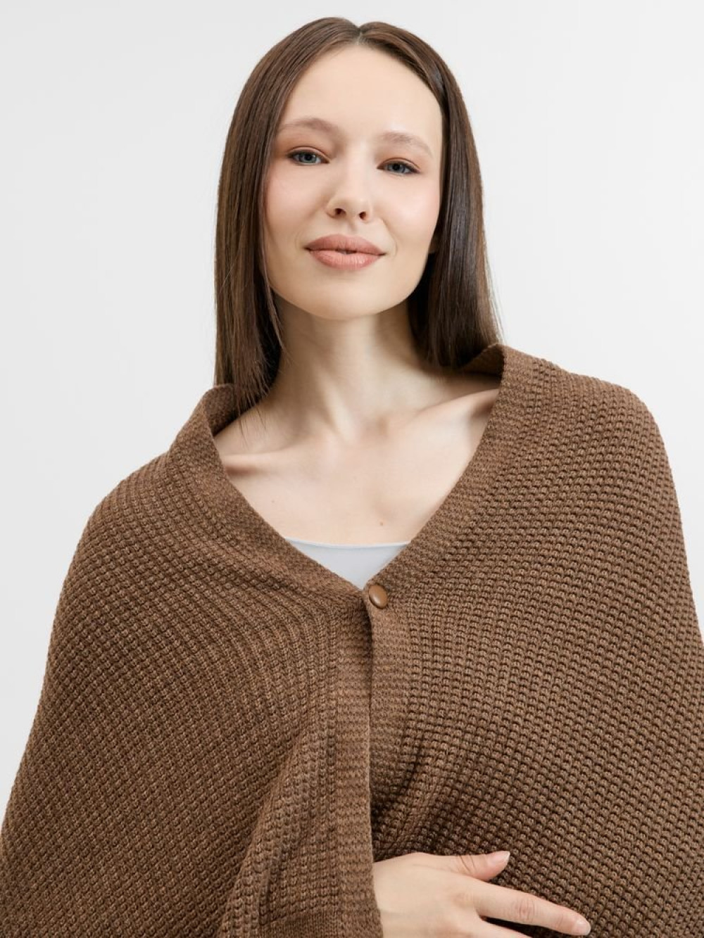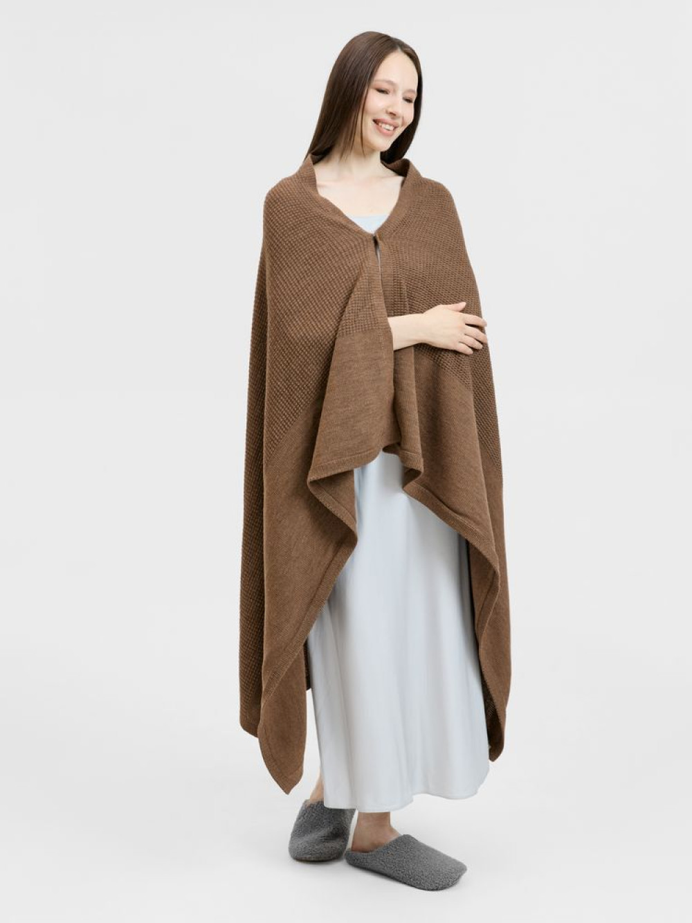 Плед Voyage соткан из мягкого сочетания шерсти и акрила — нежный, теплый и невесомый, он идеален для уютных вечеров. Кнопка позволяет превратить его в элегантную накидку, когда воздух становится прохладнее.