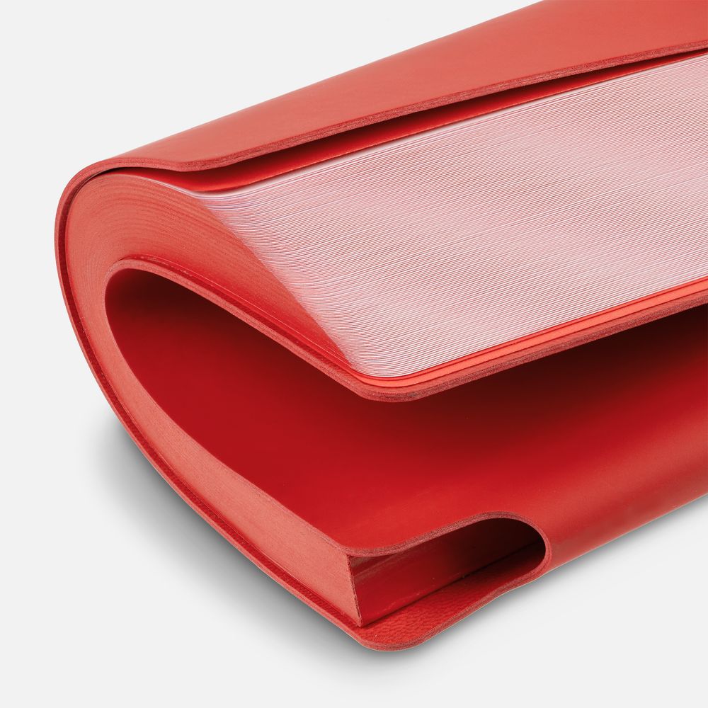 Гибкая обложка выполнена из материала Soft Touch Ultra, красный