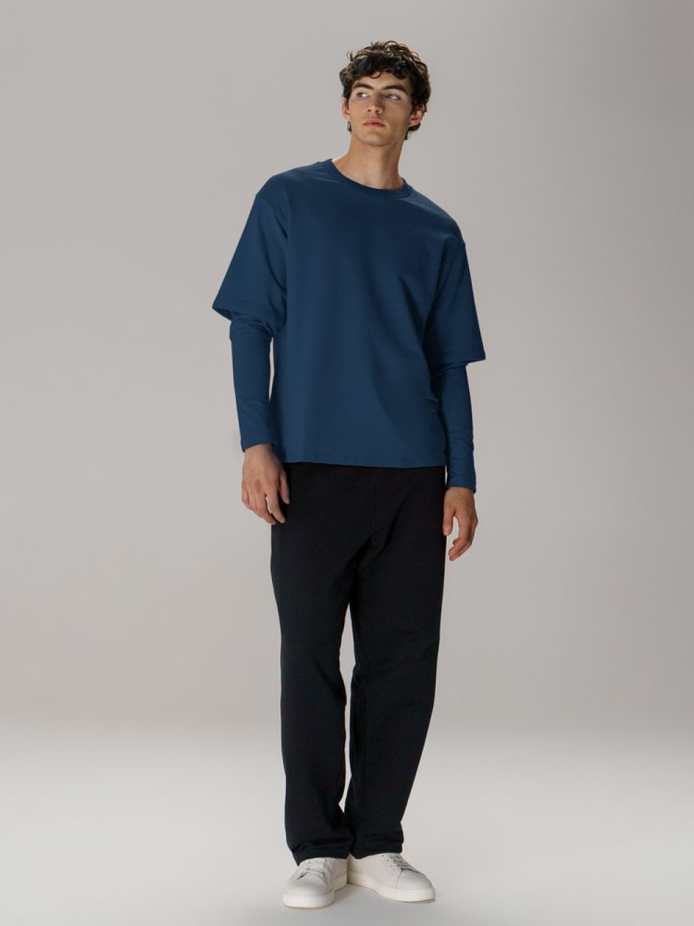 Футболка оверсайз с двойным рукавом Kosmos, темно-синяя, размер M/L
