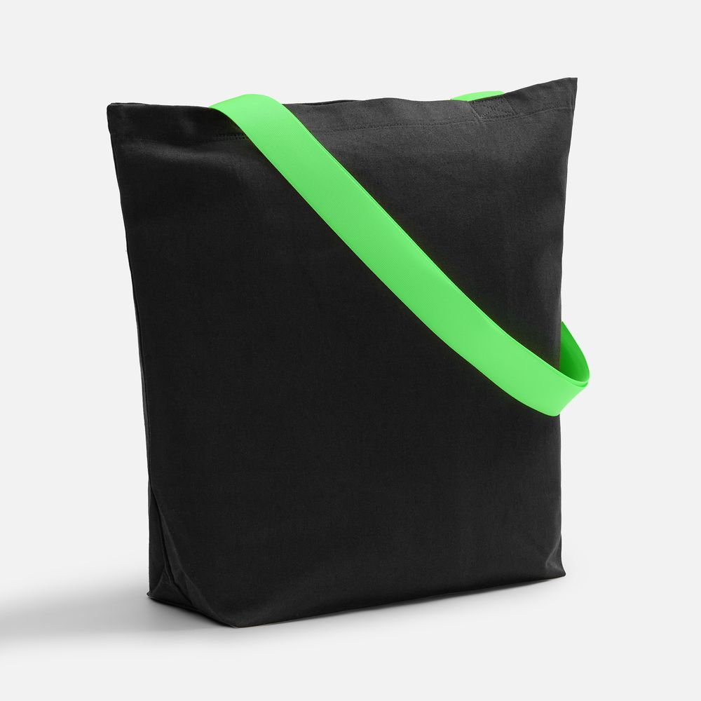 Шопер B5, черный с широкими зелеными ручками