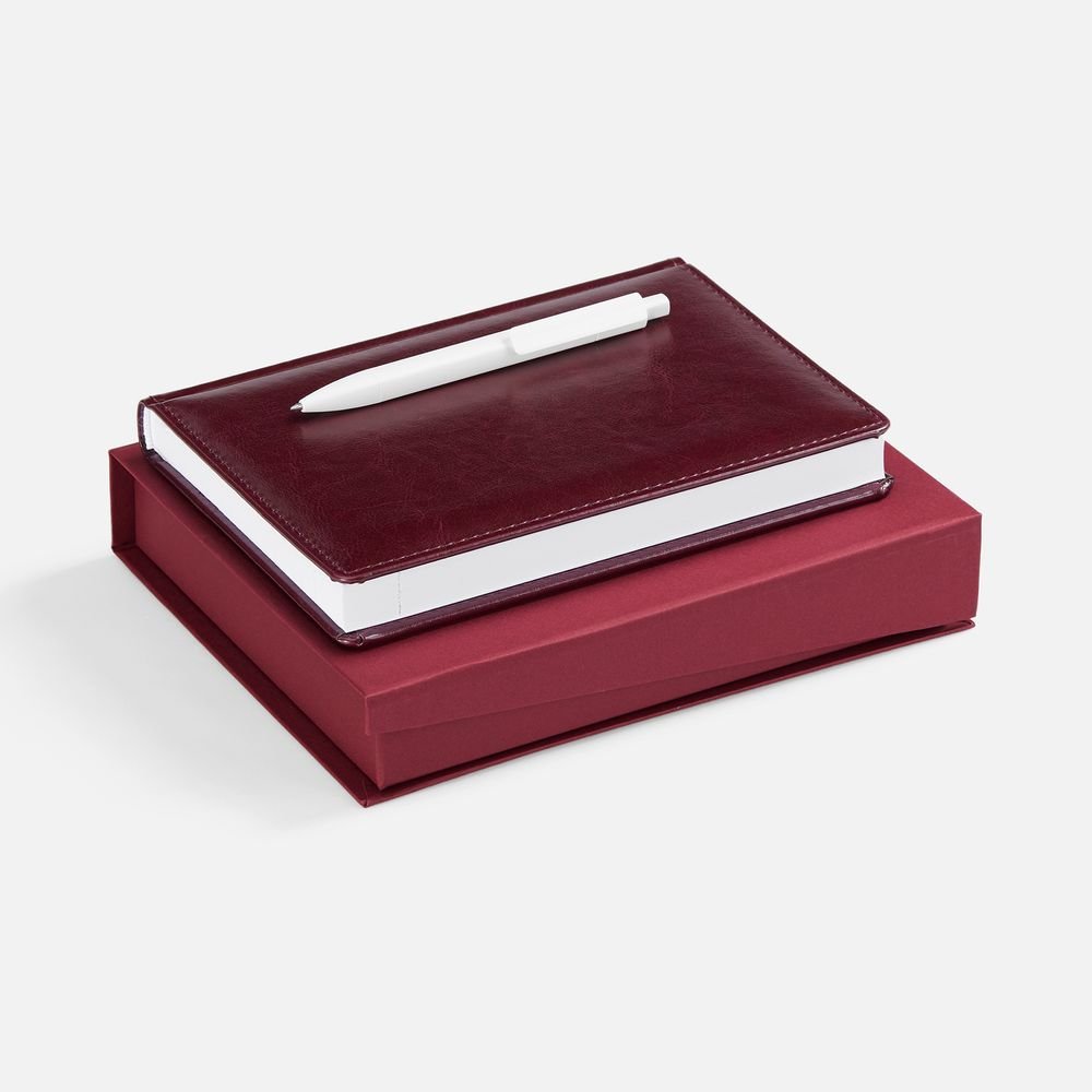 Две самые классические модели в одном деловом наборе: ежедневник Nebraska с «пухлой» обложкой и ручка Raja — кажется, они никогда не выйдут из моды.