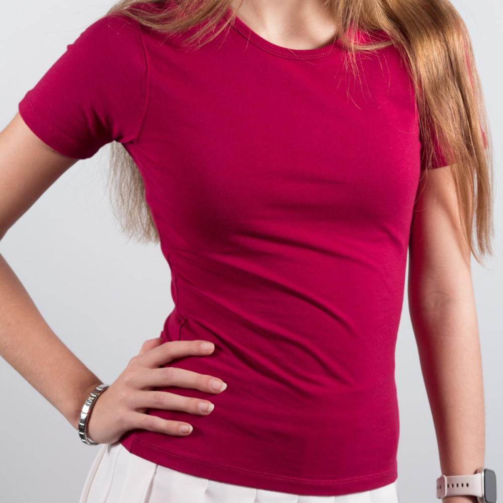 Плотные стрейчевые женские футболки REDFORT® из гребенной пряжи (пенье), плотность 195 г/м2, зауженный приталенный силуэт. Изготовлены из хлопка 95%, лайкры 5%. Малоусадочные с безворсовой поверхностью ткани. Пряжа проходит электронную очистку от примесей, полотно - кулирная гладь, гладкое, прекрасно подходит для нанесения разных видов печати. Пошив на современном японском оборудовании; швы прочные с повышенной частотой строчки. Двойные отделочные швы на горловине, плечах, вокруг проймы и подгибах. Отбелка оптическим отбеливателем, полотно достигает высшей степени белизны. Крашение активными красителями - цвет получается яркий, чистый, стойкий. Подходят для массовых рекламных мероприятий, как униформа для персонала, а также для розничной торговли. Продукция сертифицирована. Каждое изделие имеет индивидуальную упаковку.