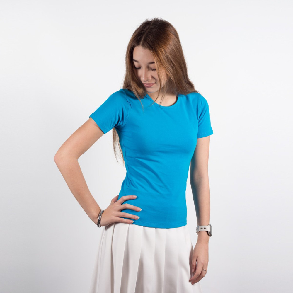Плотные стрейчевые женские футболки REDFORT® из гребенной пряжи (пенье), плотность 195 г/м2, зауженный приталенный силуэт. Изготовлены из хлопка 95%, лайкры 5%. Малоусадочные с безворсовой поверхностью ткани. Пряжа проходит электронную очистку от примесей, полотно - кулирная гладь, гладкое, прекрасно подходит для нанесения разных видов печати. Пошив на современном японском оборудовании; швы прочные с повышенной частотой строчки. Двойные отделочные швы на горловине, плечах, вокруг проймы и подгибах. Отбелка оптическим отбеливателем, полотно достигает высшей степени белизны. Крашение активными красителями - цвет получается яркий, чистый, стойкий. Подходят для массовых рекламных мероприятий, как униформа для персонала, а также для розничной торговли. Продукция сертифицирована. Каждое изделие имеет индивидуальную упаковку.