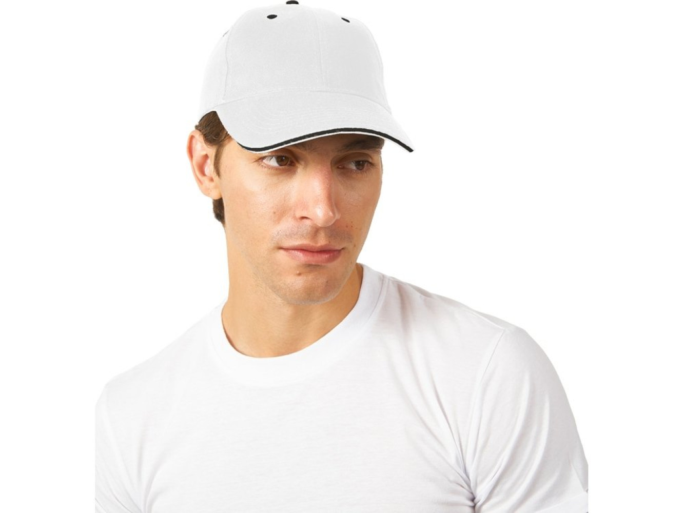 Стильная 6-панельная промо-бейсболка с контрастными деталями. Отличный выбор для яркого и запоминающегося брендинга. - Классическая бейсболка сшита из 6 панелей. - Яркие акценты – контрастная верхняя пуговичка, а также вышитые люверсы – стильная деталь, привлекающая внимание и усиливающая узнаваемость бренда. - Эффективная вентиляция: люверсы обеспечивают комфорт при носке - Премиальный вид козырька конструкции "сэндвич" с декоративным контрастным кантом по краю, не только эстетично, но и повышает жесткость и долговечность козырька. - Удобная посадка - регулируемая застежка на липучке (велкро) гарантирует идеальное прилегание на любую голову.