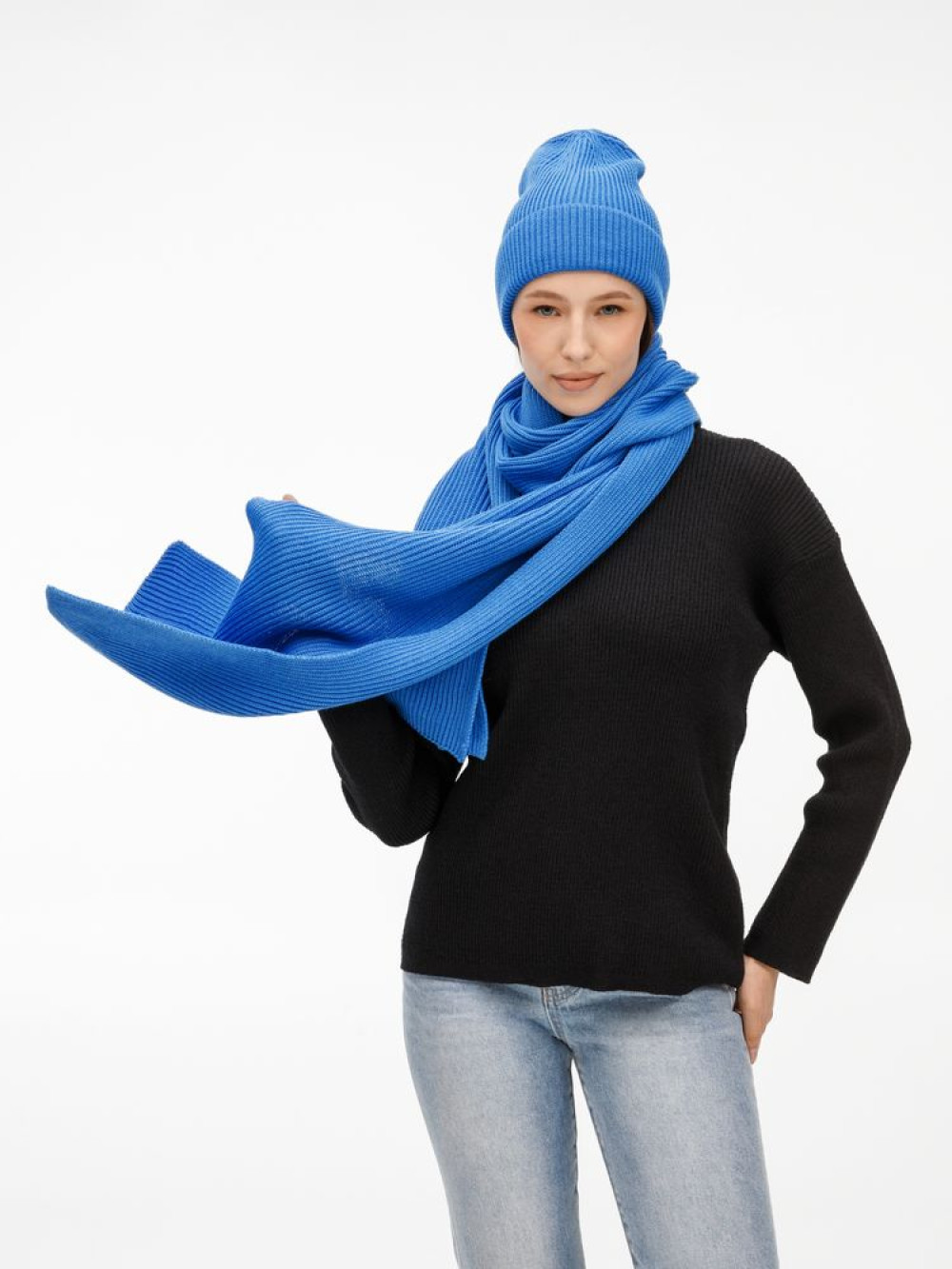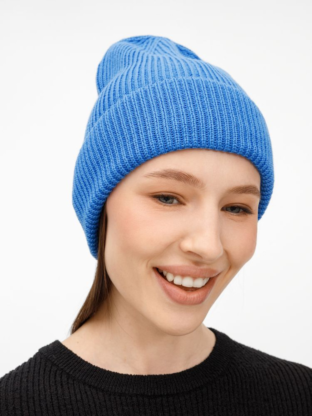Удлиненный силуэт шапки Nobilis Mono из мягкой полушерстяной пряжи с широким отворотом создает стильный современный образ, а фактурная вязка добавляет объем и выразительность.