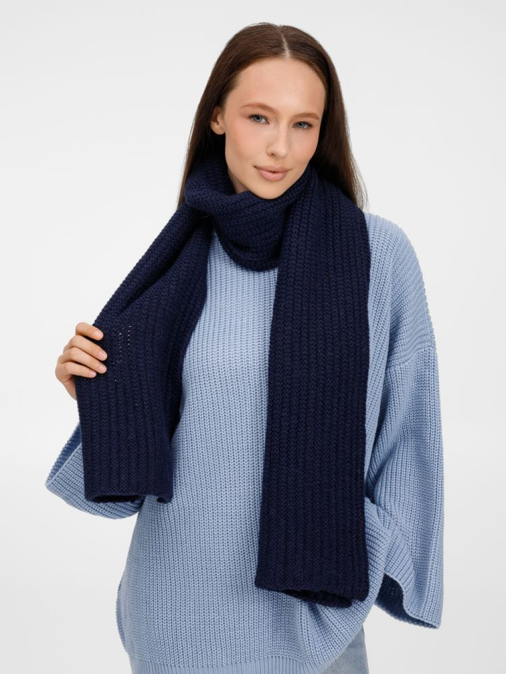 Однослойный шарф Frissonelle фактурной вязки — универсальный аксессуар: полушерстяная пряжа с выразительным рельефным узором создает объем, даря тепло и ощущение уюта. Сдержанная палитра и лаконичный дизайн делают его гармоничным дополнением к пальто, куртке или пуловеру.