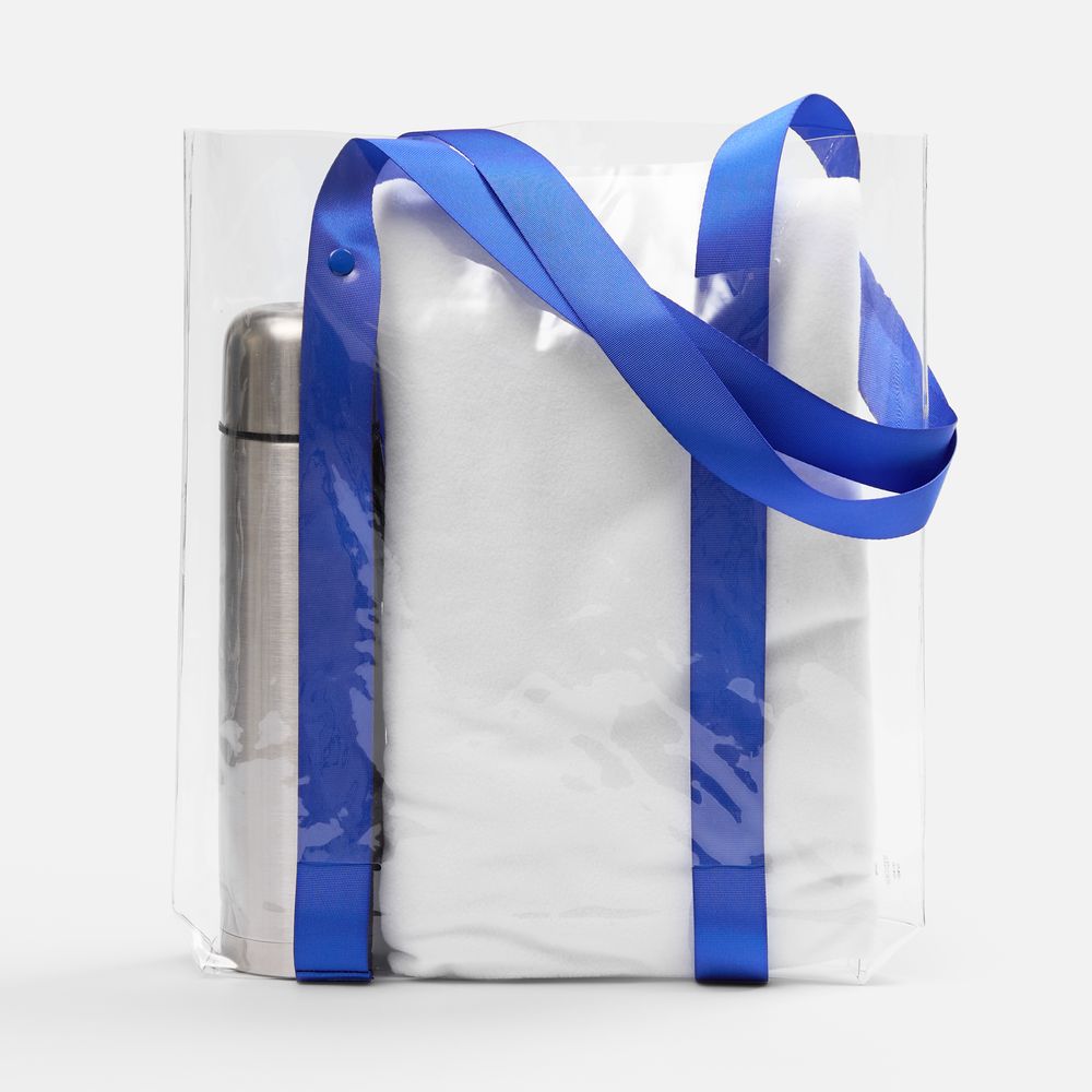 Прозрачные сумки никогда не выйдут из моды. А цветные ручки легко впишутся в брендбук и точно передадут настроение, которое хотелось бы транслировать.