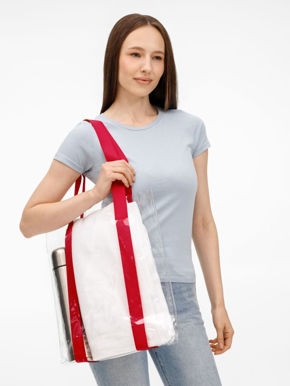 Прозрачные сумки никогда не выйдут из моды. А цветные ручки легко впишутся в брендбук и точно передадут настроение, которое хотелось бы транслировать.