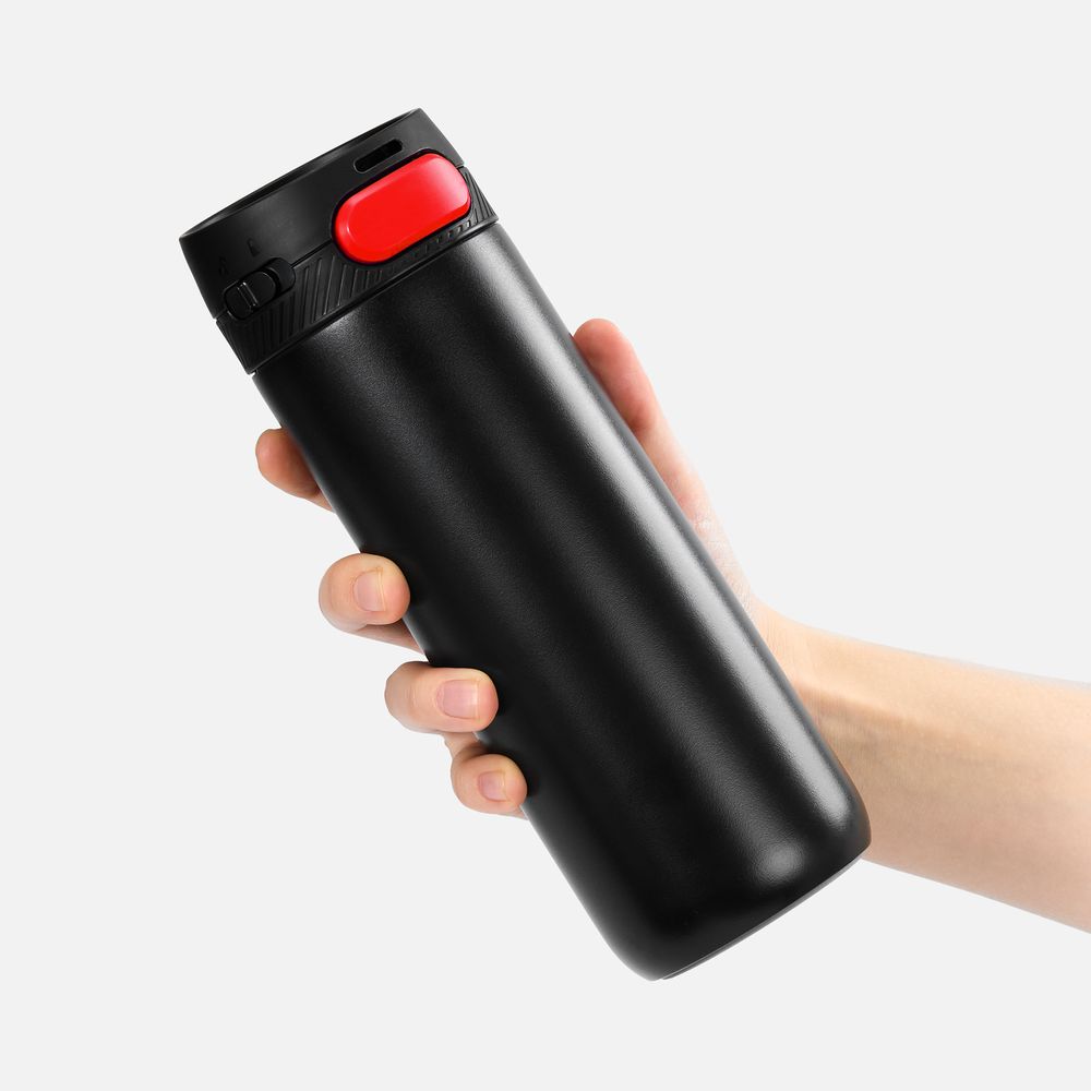 Термостакан X1 с цветной кнопкой, черный с красным