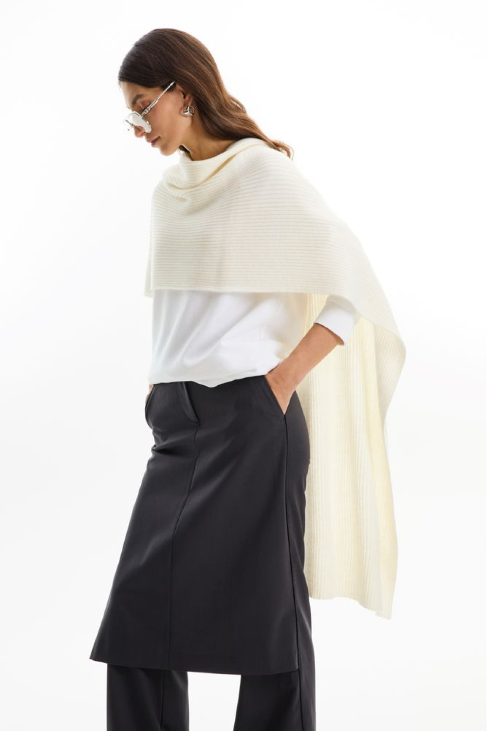 Воздушный шарф Bernard связан из мериносовой шерсти и имеет специальное отверстие, благодаря которому вы можете аккуратно повязать его легким движением руки. А если предпочитаете классические узлы, отверстие, спрятанное в фактурном узоре, не помешает повязать шарф привычным образом.