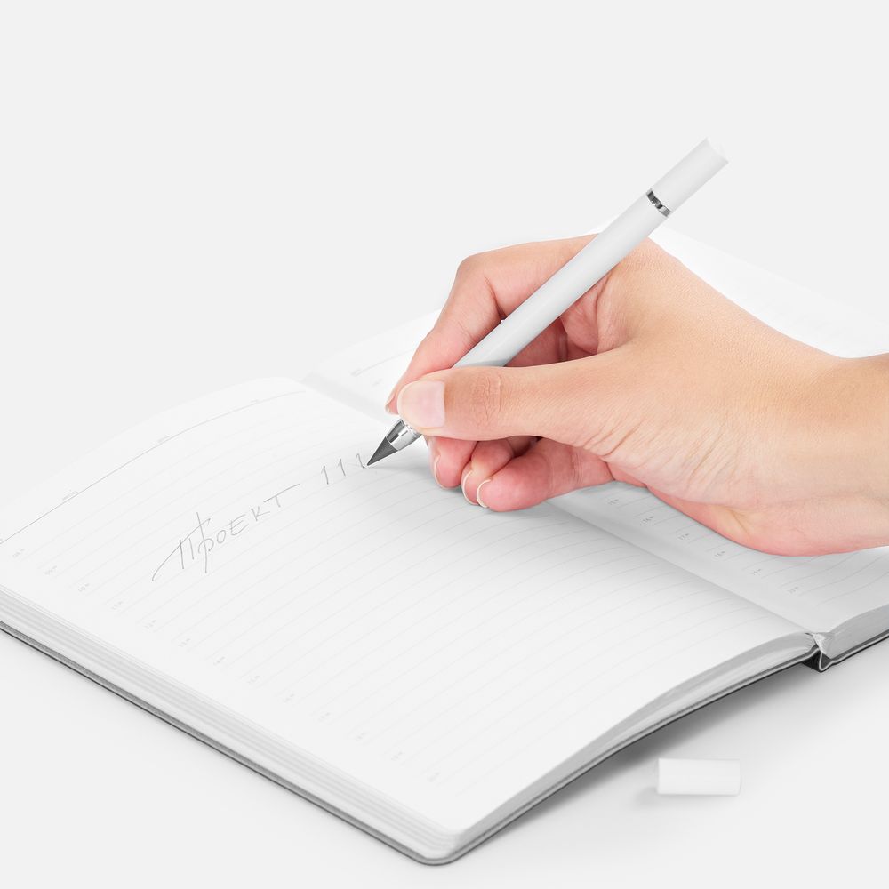 карандаша не требует заточки, а закончившийся стержень в ручке