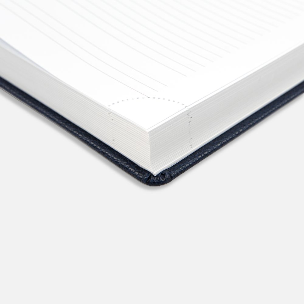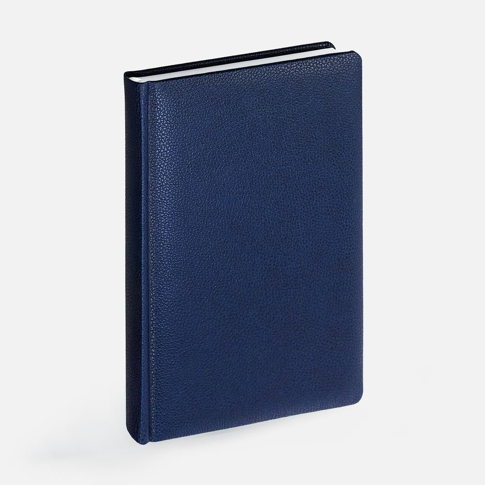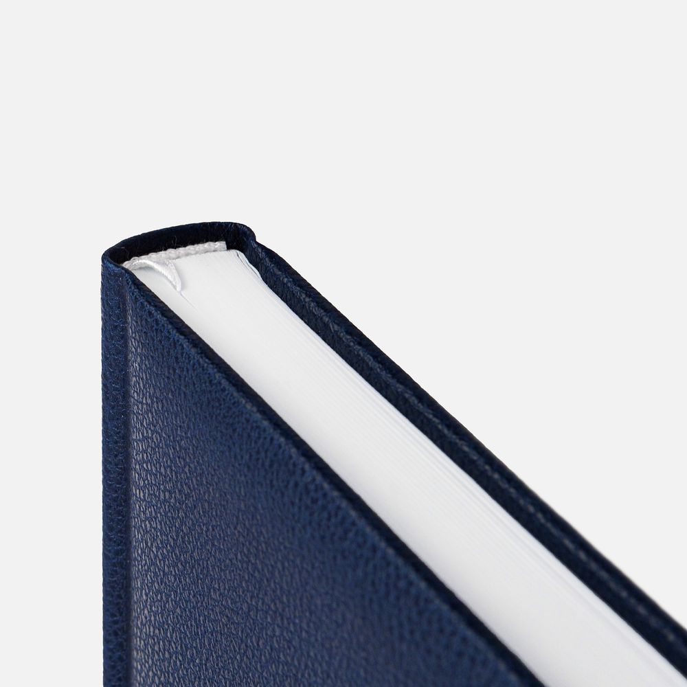 Ежедневник в твердой обложке c поролоном, выполнен из материала La Fite, темно-синий ХХ, дополнен ляссе белого цвета.