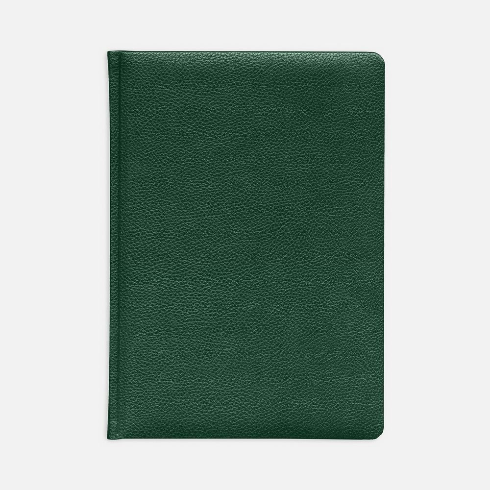Ежедневник в твердой обложке c поролоном, выполнен из материала La Fite, зеленый FF, дополнен ляссе белого цвета.