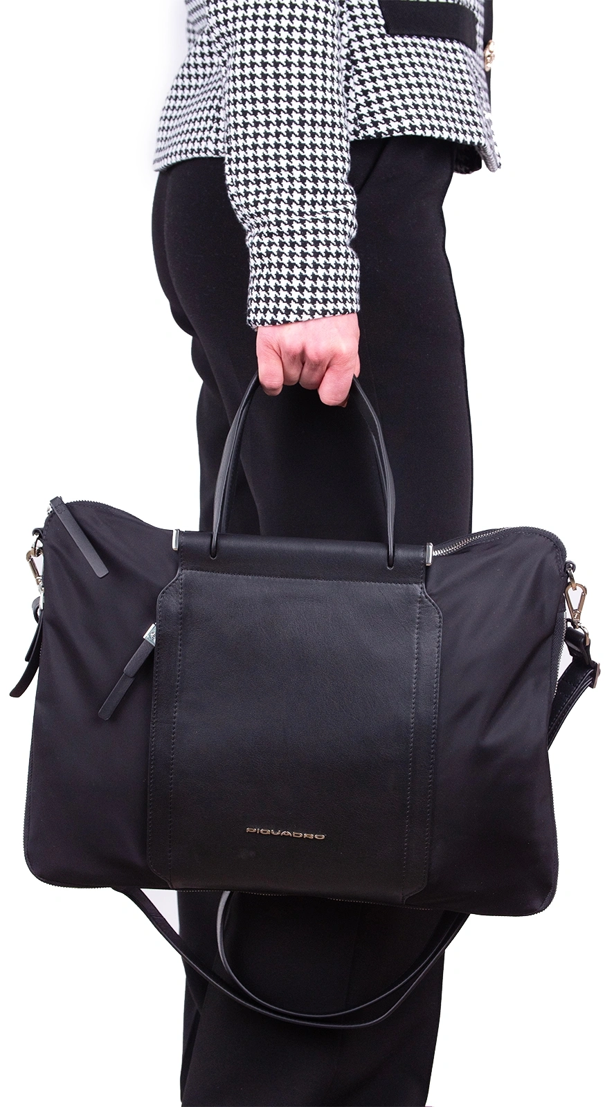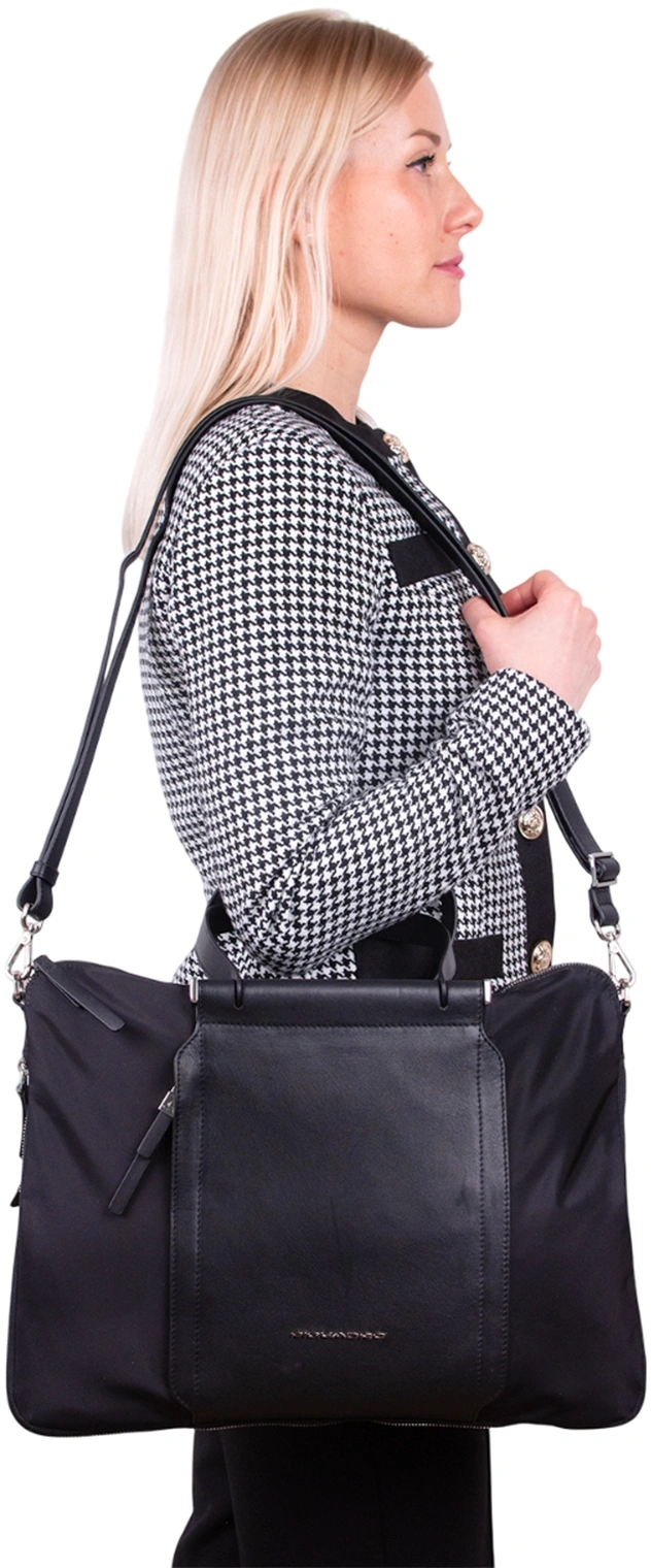 Деловая сумка женская Piquadro Lyra CA4021W92T/N с отделением для ноутбука 15.6" черная ткань/натур.кожа