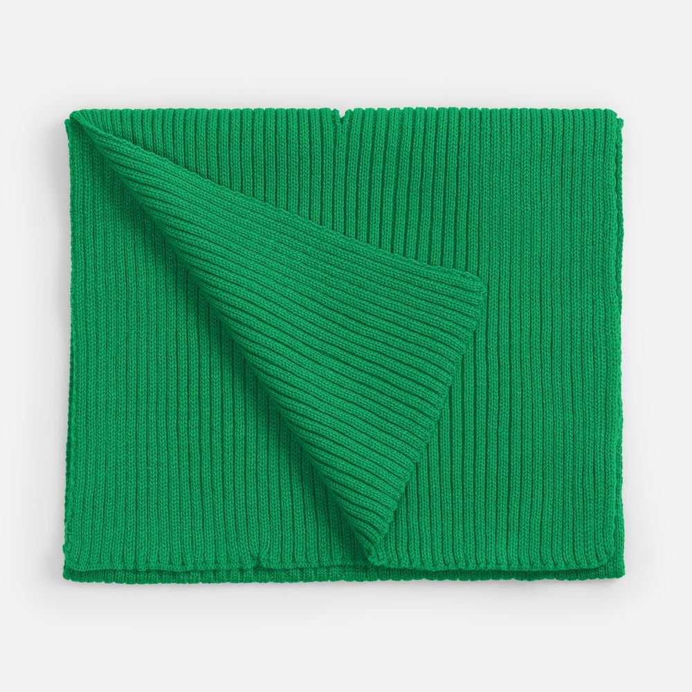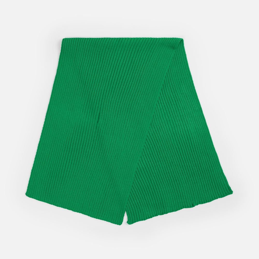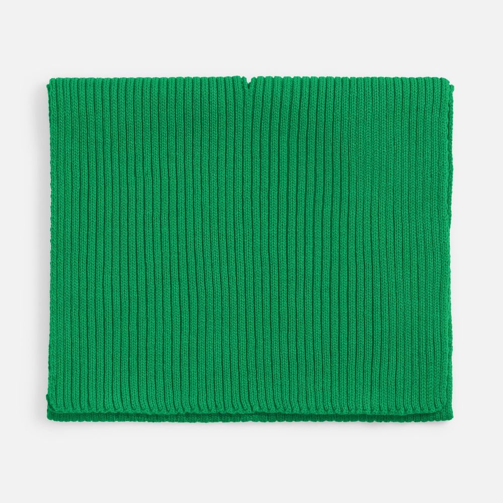 Однослойный шарф фактурной вязки с отверстием для быстрого и удобного завязывания.