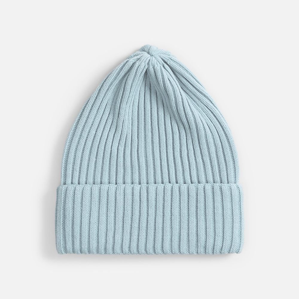 Однослойная шапка фактурной вязки с двойным отворотом.