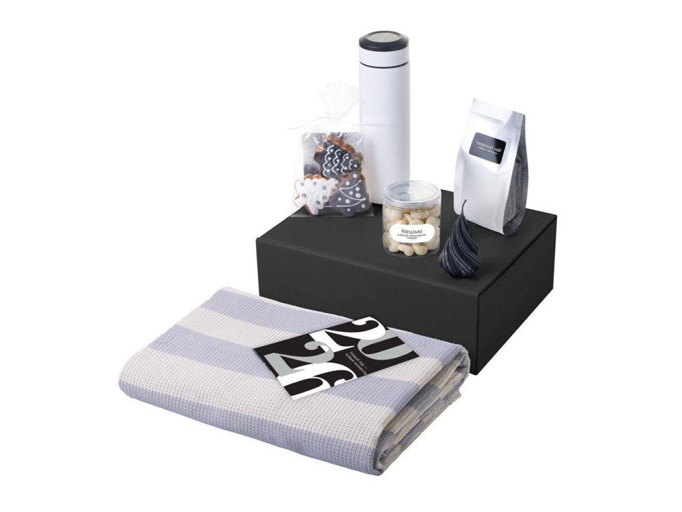 Новый год — новые моменты, которые хочется прожить по-настоящему. Вспомните детство, когда мы никуда не спешили, наслаждались каждым мгновением и делали то, что нам нравилось. Наборы серии Re: напоминают: важнее всего человек, а не его роль. Они дарят возможность замедлиться, отложить гаджеты и насладиться настоящим. Пусть новогоднее время станет паузой, наполненной тишиной, теплом и моментами, которые восстанавливают перед новым годом. Каждый набор — как мини-ритуал: согреться, замедлиться, почувствовать себя, поблагодарить и восстановиться после года, полного скорости, дедлайнов и шума. Это не о деловом «спасибо» — это о настоящем внимании. Это о том, чтобы сказать: «Я вижу, сколько ты сделал. А теперь — время для тебя». Набор "Re:Warm" приглашает к маленькому ритуалу отдыха: укутайтесь в мягкий плед, налейте любимый чай, возьмите книгу или включите фильм и наслаждайтесь спокойным вечером. Кешью в шоколадной глазури и имбирное печенье делают каждый глоток и момент ещё теплее, вкуснее и уютнее.