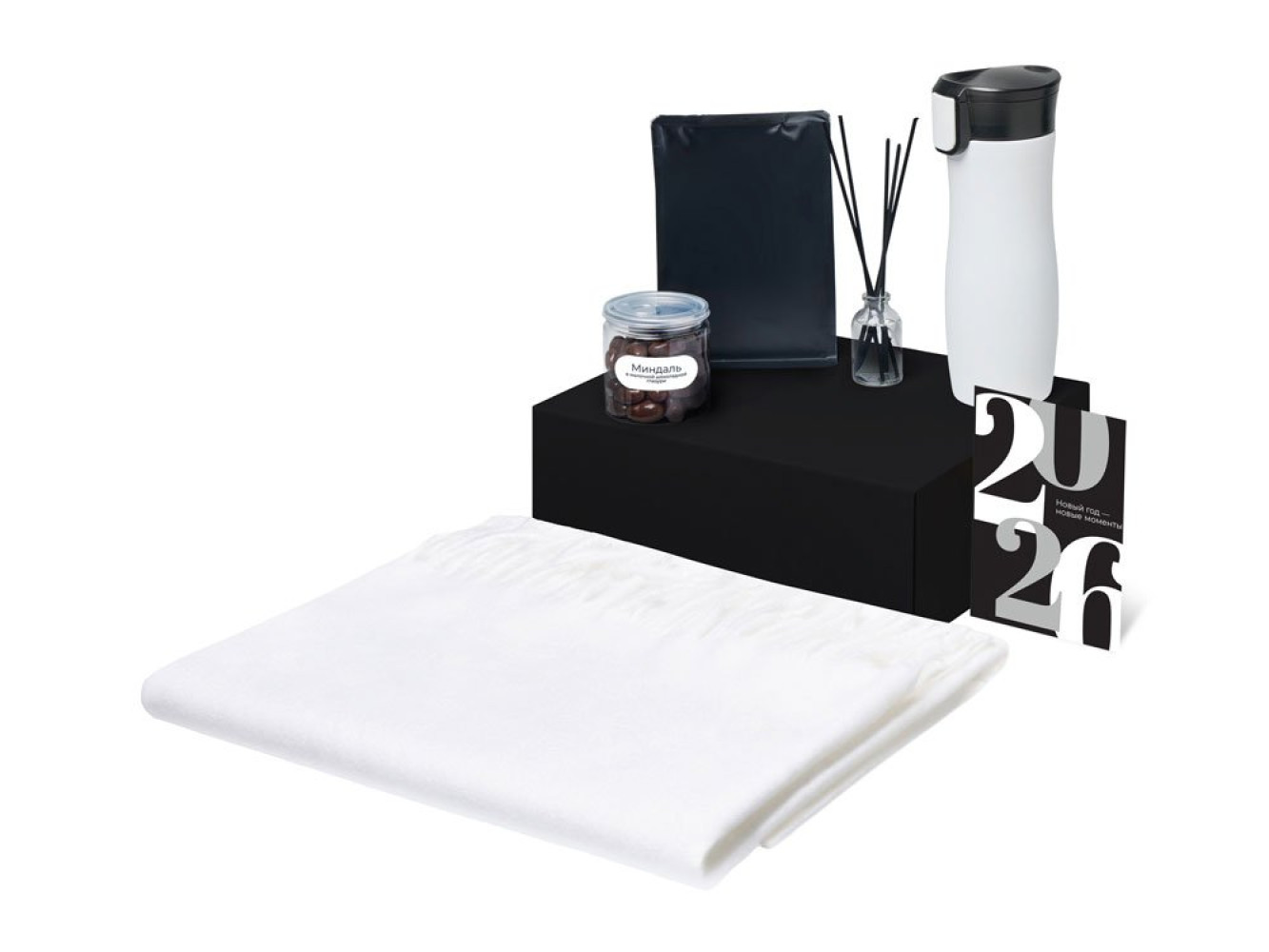 Новый год — новые моменты, которые хочется прожить по-настоящему. Вспомните детство, когда мы никуда не спешили, наслаждались каждым мгновением и делали то, что нам нравилось. Наборы серии Re: напоминают: важнее всего человек, а не его роль. Они дарят возможность замедлиться, отложить гаджеты и насладиться настоящим. Пусть новогоднее время станет паузой, наполненной тишиной, теплом и моментами, которые восстанавливают перед новым годом. Каждый набор — как мини-ритуал: согреться, замедлиться, почувствовать себя, поблагодарить и восстановиться после года, полного скорости, дедлайнов и шума. Это не о деловом «спасибо» — это о настоящем внимании. Это о том, чтобы сказать: «Я вижу, сколько ты сделал. А теперь — время для тебя». Набор «Re:Harmony» — о начале дня с теплом и гармонией. Укутайтесь в мягкий палантин, возьмите термокружку с ароматным кофе и отправляйтесь на прогулку. Сделайте паузу, вдохните зимний аромат, подышите и подумайте о том, что для вас важно. Миндаль в шоколадной глазури добавляет сладкую нотку удовольствия, превращая каждый момент в маленький ритуал спокойствия и уюта. Диффузор с ароматом еловых шишек и хвои наполнит пространство ощущением зимнего леса и создаст атмосферу спокойствия и полной гармонии.