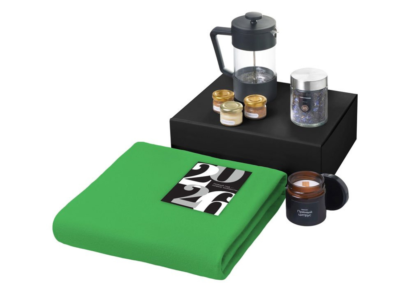 Подарочный набор «Re:Moments» с пледом, френчпрессом и медом
