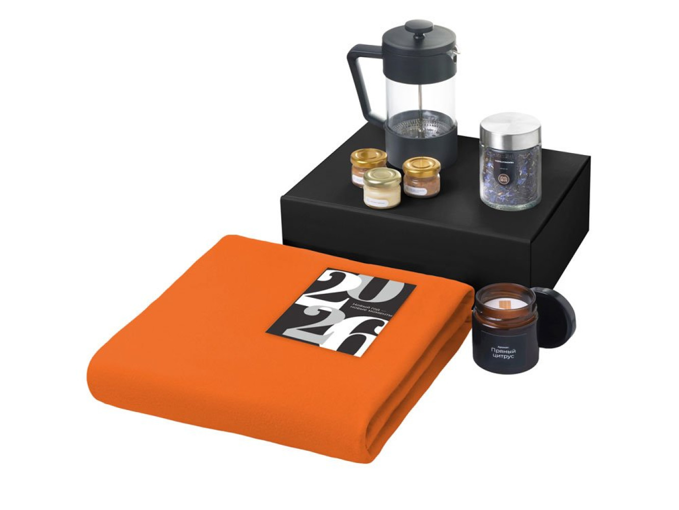 Подарочный набор «Re:Moments» с пледом, френчпрессом и медом