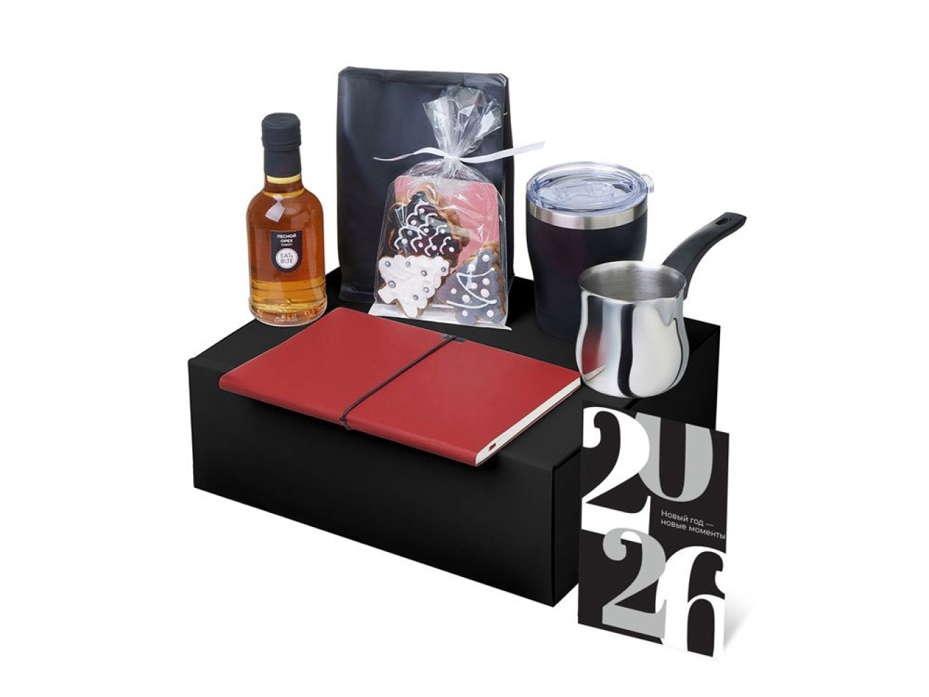 Новый год — новые моменты, которые хочется прожить по-настоящему. Вспомните детство, когда мы никуда не спешили, наслаждались каждым мгновением и делали то, что нам нравилось. Наборы серии Re: напоминают: важнее всего человек, а не его роль. Они дарят возможность замедлиться, отложить гаджеты и насладиться настоящим. Пусть новогоднее время станет паузой, наполненной тишиной, теплом и моментами, которые восстанавливают перед новым годом. Каждый набор — как мини-ритуал: согреться, замедлиться, почувствовать себя, поблагодарить и восстановиться после года, полного скорости, дедлайнов и шума. Это не о деловом «спасибо» — это о настоящем внимании. Это о том, чтобы сказать: «Я вижу, сколько ты сделал. А теперь — время для тебя». Набор «Re:Routine» — о маленьких ритуалах, которые делают каждый день особенным. Сварите ароматный кофе в турке, налейте его в термокружку, вдохните аромат и позвольте себе немного тишины. Остановитесь, подумайте, что вы чувствуете и чего хотите. Этот блокнот можно использовать как личный дневник, место для идей, или как рабочий блокнот в новом году — ведь начинать писать с чистого листа всегда особенно приятно. Имбирные пряники добавят сладкую нотку уюта и напомнят: даже в привычных днях можно находить тепло и вдохновение.