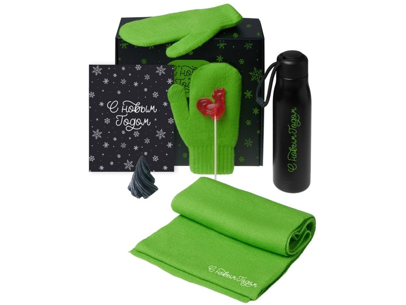 • Материал: варежки - 100% акрил; шарф - 100% акрил; термос - нержавеющая сталь; открытка - бумага; мешок - нетканый материал