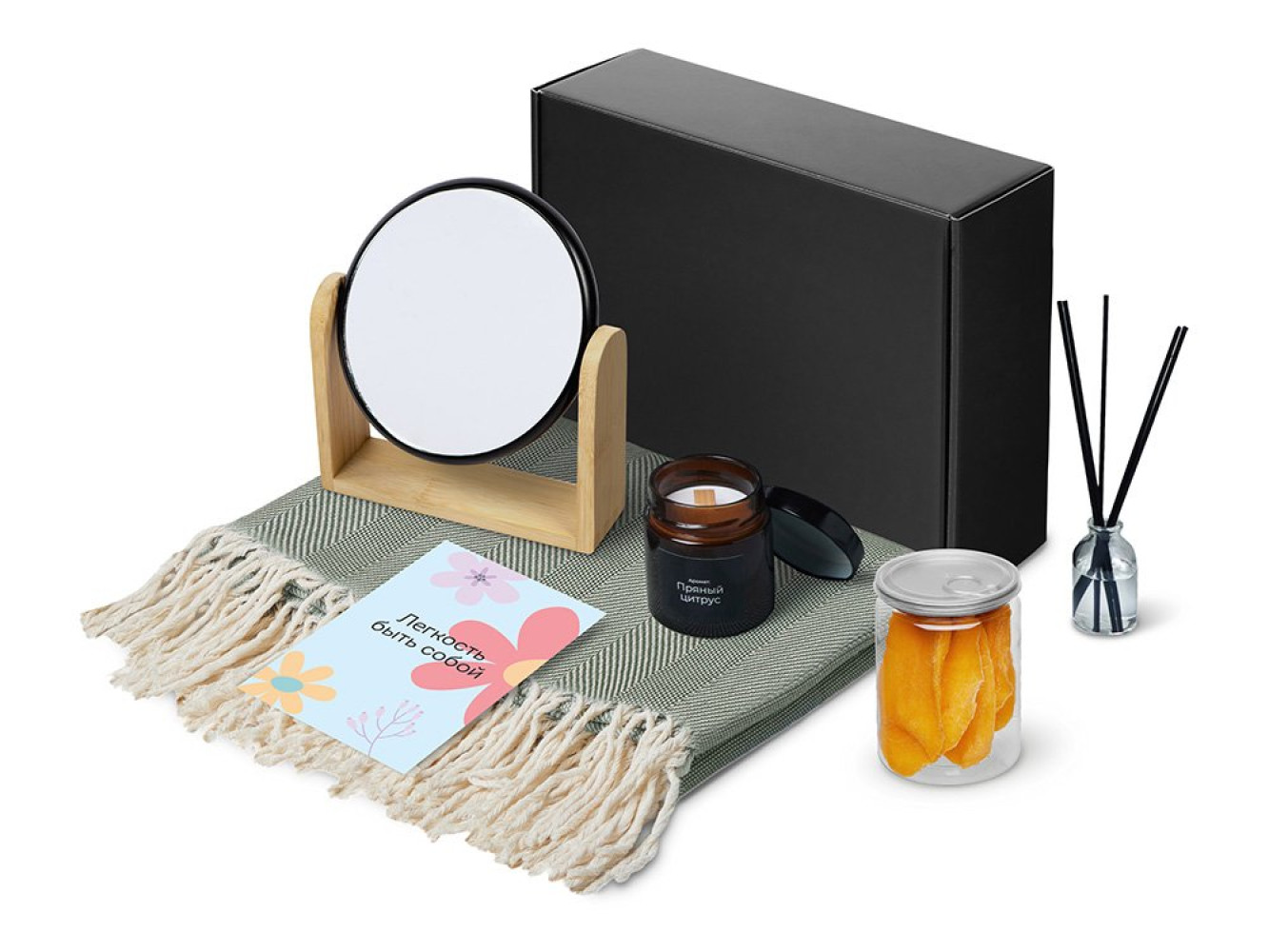 Подарочный набор «Re:f. Shelter» с пледом, зеркалом, свечой и диффузором