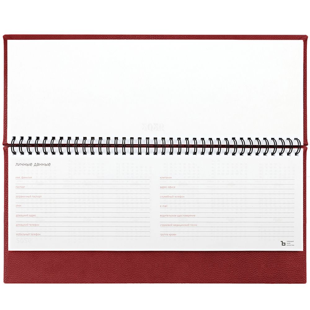Планинг с твердой обложкой с поролоном, выполнен из материала La Fite, красный РР.