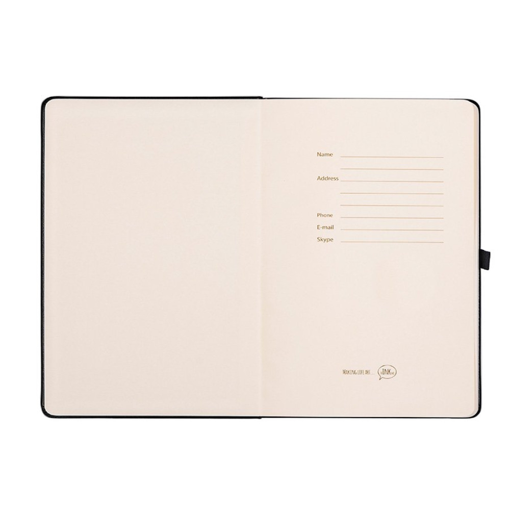 Размер: 130х210 мм Переплет: твердый Обложка: термоактивный PU Sensi, по фактуре и тактильно напоминающий лайковую кожу, невероятно приятный на ощупь Отделка: жаккардовая резинка 12 мм и пенхолдер в тон обложки Форзац нахзац: кремовый Блок: недатированный Разлиновка: в линейку Количество страниц: 256 Углы блока: скругленные Цвет бумаги: кремовый Плотность бумаги: 70г м2 Ляссе: в тон обложке Карман для визиток: есть Упаковка: фирменный сливбокс thINKme