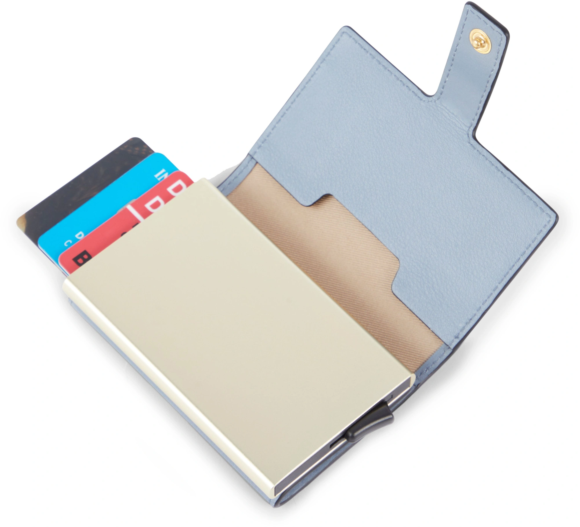 Выдвижной держатель для карт из металла и кожи с защитой RFID