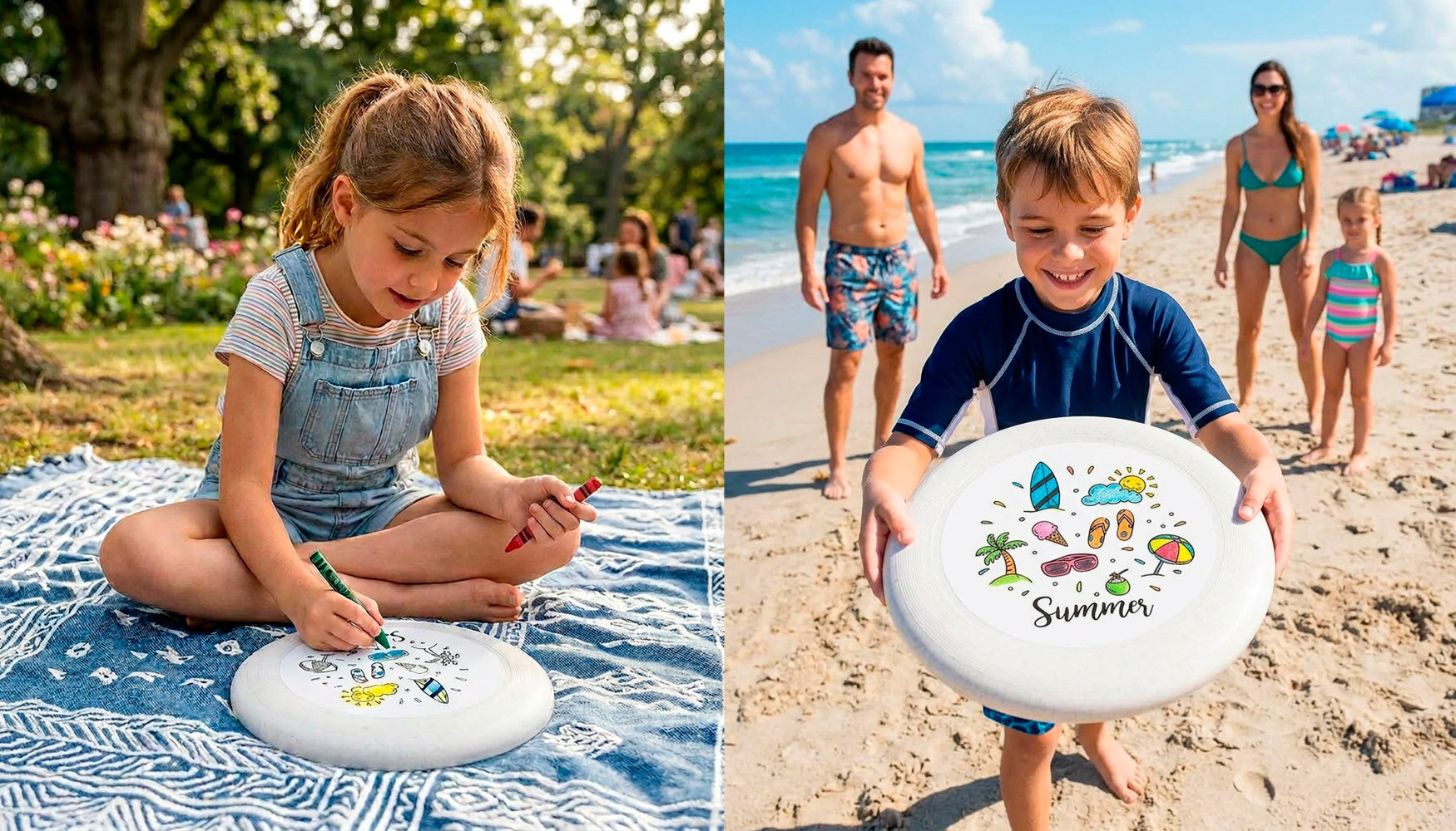 Лето – время ярких красок, веселья и активностей. Новинка – фрисби-раскраска для игр и творчества. 6 восковых карандашей в комплекте, яркие оттенки для создания авторской тарелки. Простая активная игра для 2 и более человек, идеальна для прогулок, пикников, дней рождения и отдыха на пляже. Восковые карандаши безопасны, не пачкают одежду, корпус тарелки изготовлен из пластика с добавлением растительных волокон.