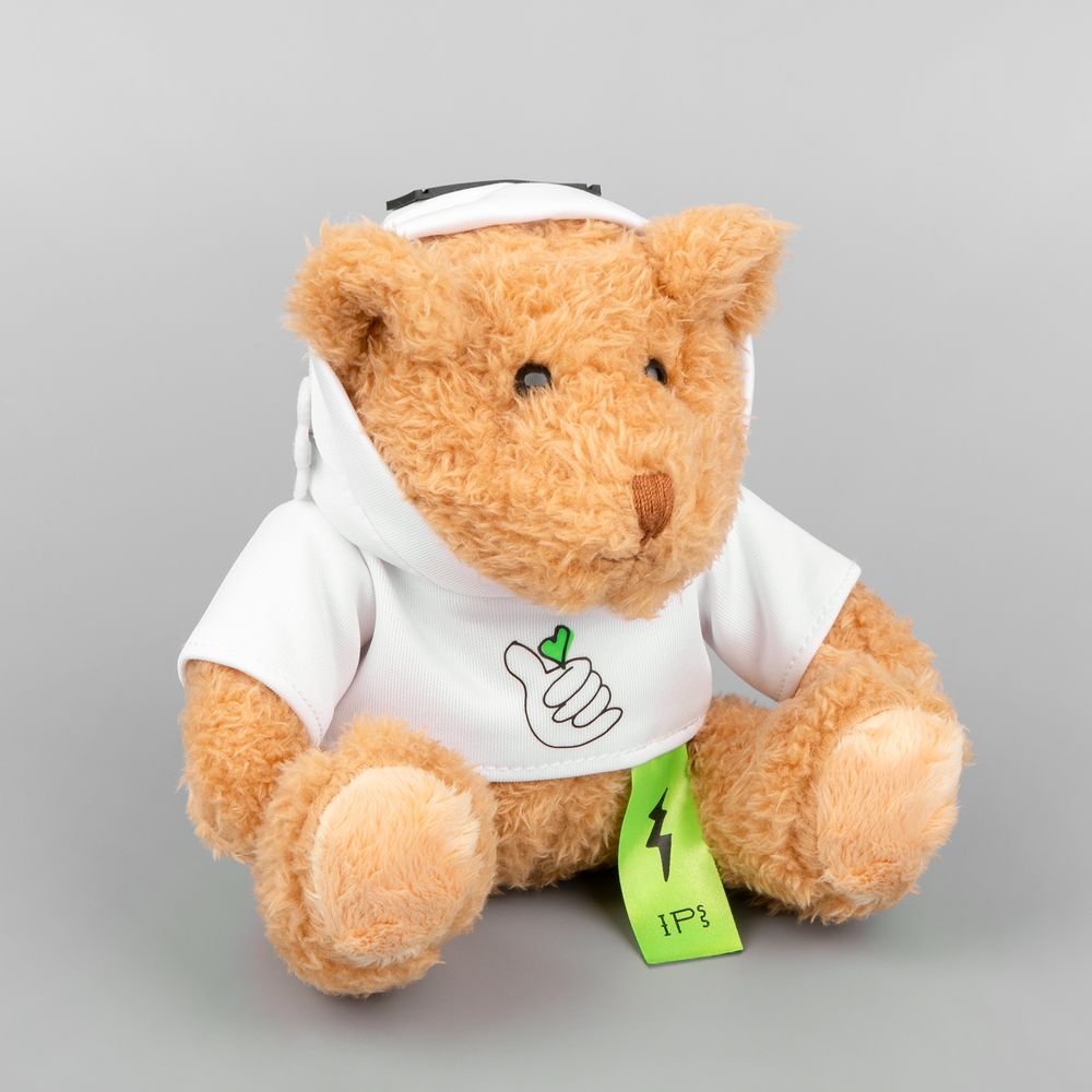 Белое худи позволяет нанести полноцветное изображение — так мишка