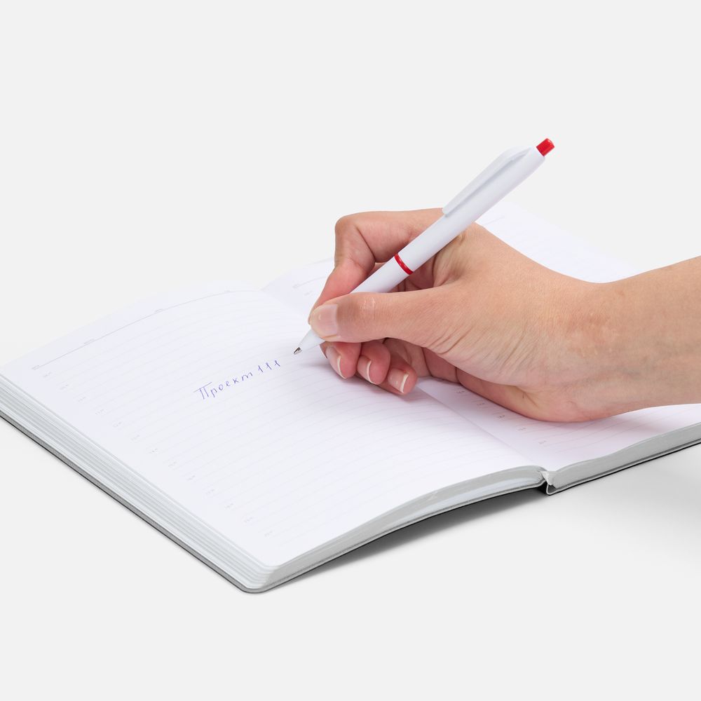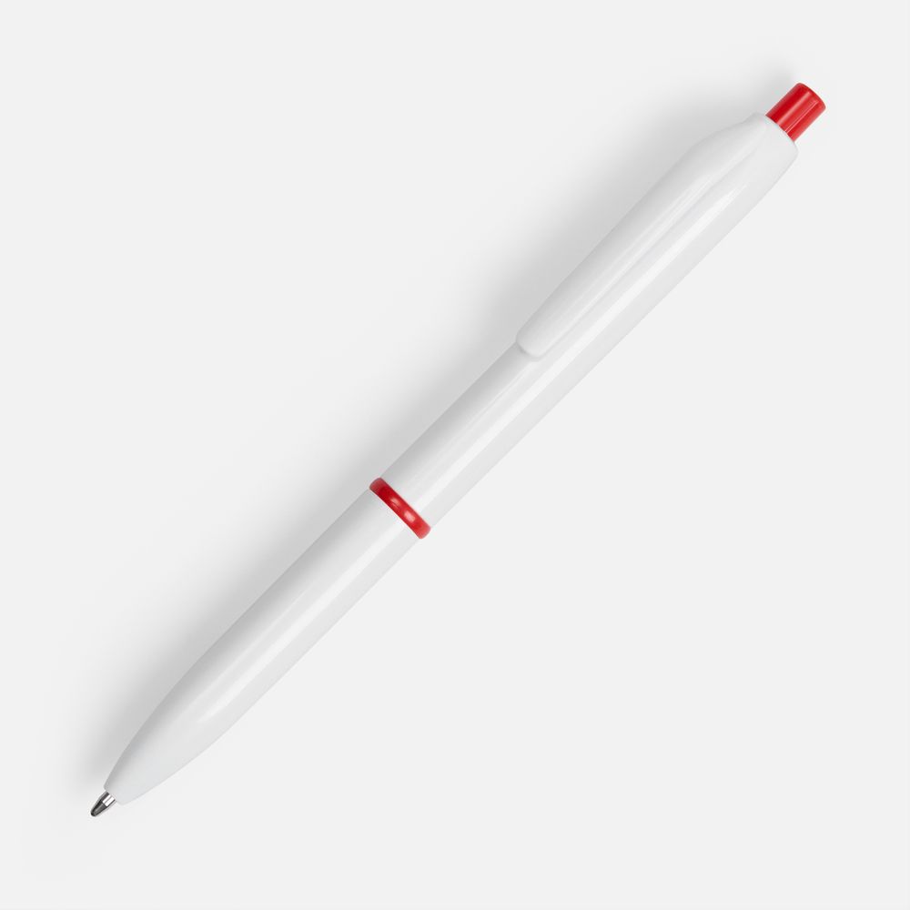 Классическая модель ручки с акцентными деталями: кольцом и кнопкой, — которые дополнят логотип компании.