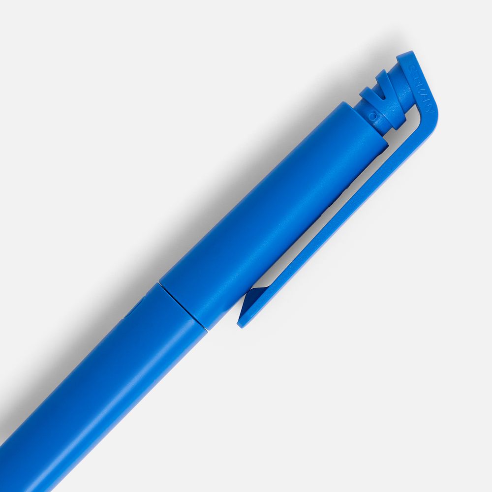 Шариковая ручка с эргономичным треугольным корпусом из матового пластика.