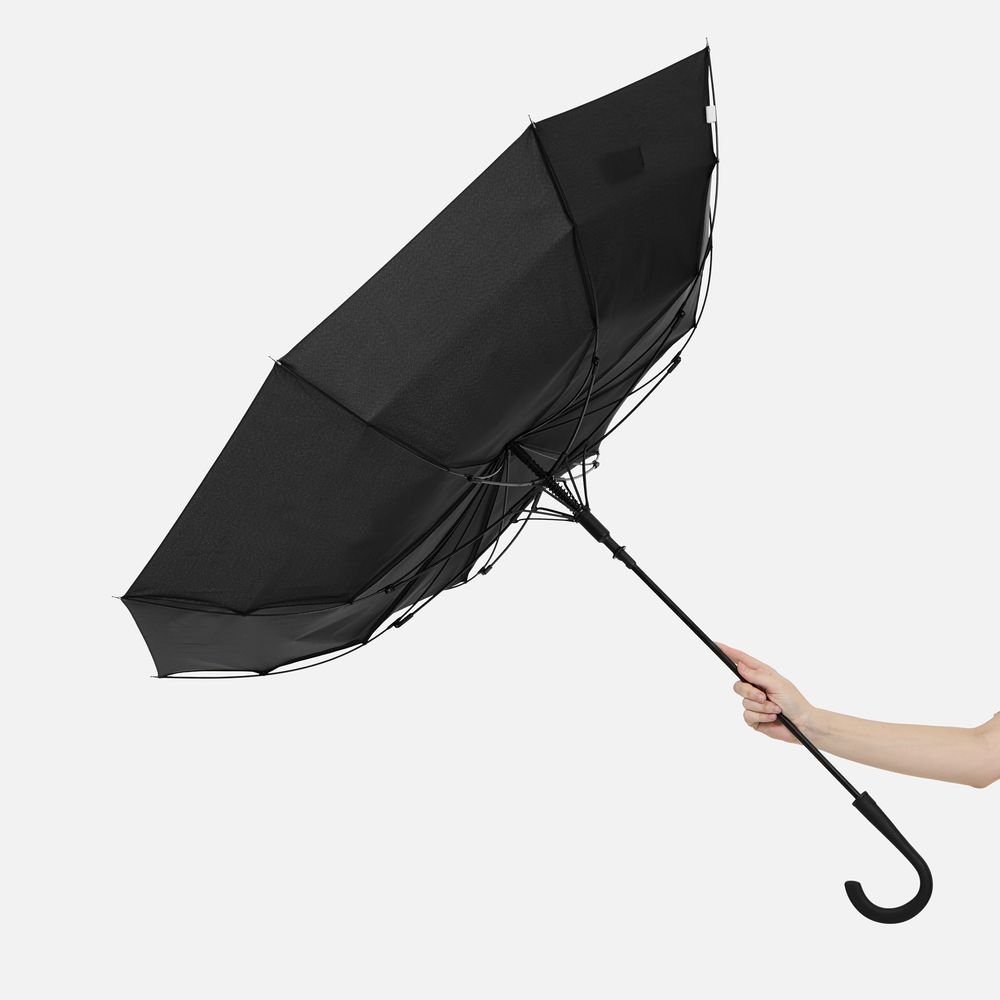 Современная модель зонта-трости с эргономичной ручкой, каркасом из стеклопластика и увеличенным размером купола.
