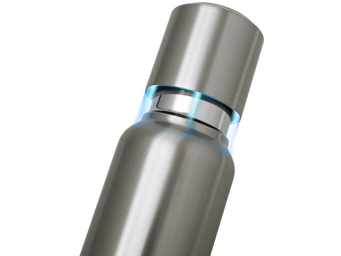 Вакуумный термос Magne — инновация, которая держит тепло и внимание. Термос Waterline — это не просто емкость для напитков, а технологичный аксессуар, сочетающий передовые решения и безупречный дизайн. Изготовлен из пищевой нержавеющей стали AISI 304, он безопасен, долговечен и устойчив к внешним воздействиям. Объем 500 мл идеально подходит для ежедневного использования — в офисе, в дороге или на прогулке. Благодаря продуманной системе термоизоляции термос сохраняет тепло до 24+ часов, а горячие напитки — более 15 часов. Это стало возможным благодаря не только двойным вакуумным стенкам корпуса с дополнительно медной изоляцией, но и уникальной конструкции: внутренняя завинчивающаяся втулка также имеет вакуумную прослойку, что минимизирует теплопотери через горлышко. Главная особенность — магнитная крышка-чашка с двойными вакуумными стенками. Она мгновенно снимается и возвращается на место (менее чем за секунду!), обеспечивая комфорт и вау-эффект. Мощные неодимовые магниты надежно фиксируют крышку — даже при переворачивании и активной тряске она не отпадёт. Термос поставляется в фирменном крафтовом тубусе Waterline — стильной, экологичной и премиальной упаковке, которая подчеркивает статус подарка и отлично подходит для корпоративных программ, лояльности, промо-кампаний и розничных продаж. Такой термос не просто дарят — его замечают, им пользуются с удовольствием и рекомендуют другим. • Магнитная крышка-чашка с вакуумной изоляцией — фиксируется за секунду, не падает даже при тряске и не обжигает руки. • Продуманная система термоизоляции: вакуум в корпусе, вакуум во внутренней завинчивающейся втулке и вакуум в крышке — максимальное удержание температуры (горячее — >15 ч, тепло — >24 ч). • Изготовлен из пищевой стали AISI 304 — безопасность, долговечность и устойчивость к коррозии. • Эксклюзивный дизайн и инженерная проработка — термос, который действительно приковывает внимание и выделяется • Поставляется в премиальном крафтовом тубусе Waterline — идеальная упаковка для корпоративных подарков и розничных продаж.
