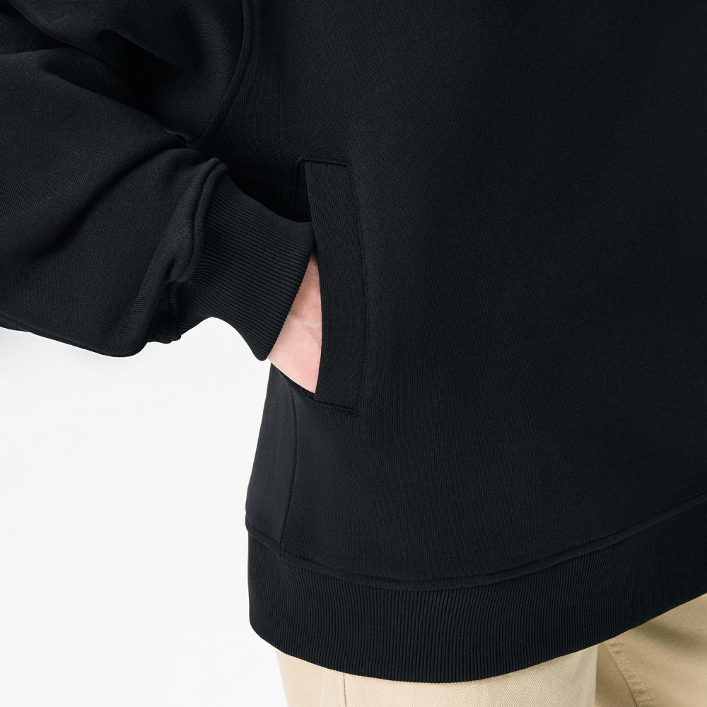 Модель выполнена из высококачественного хлопкового футера плотностью 380 г/м. Объёмная, но мягкая ткань комфортна для ежедневной носки.