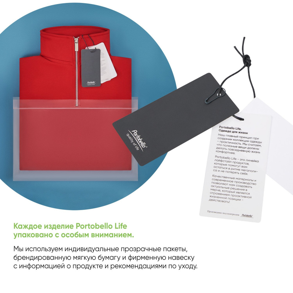 Изготовлена из плотного, но лёгкого хлопкового футера без начёса — материал держит форму, оставаясь мягким и приятным к телу. В производстве использована высококачественная пряжа пенье (compact penye) — сбалансированная по прочности и тактильной мягкости.