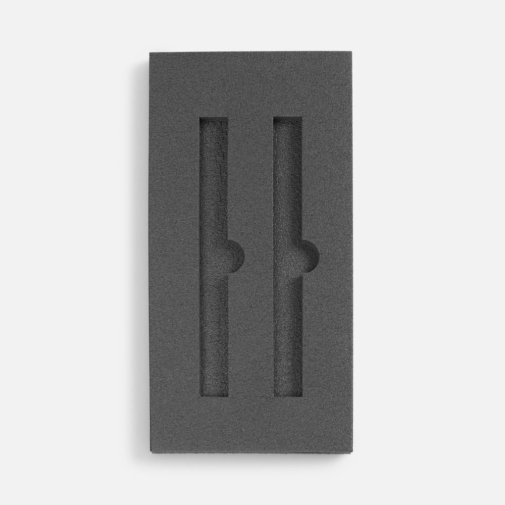 Ложемент, изготовленный из материала Izolon 500 черного цвета, представляет собой многослойную конструкцию, состоящую из нижнего слоя толщиной 5 мм и верхнего слоя толщиной 10 мм. В соответствии с утвержденным макетом, проемы для размещения предметов могут быть спроектированы как в одном, так и в обоих слоях.