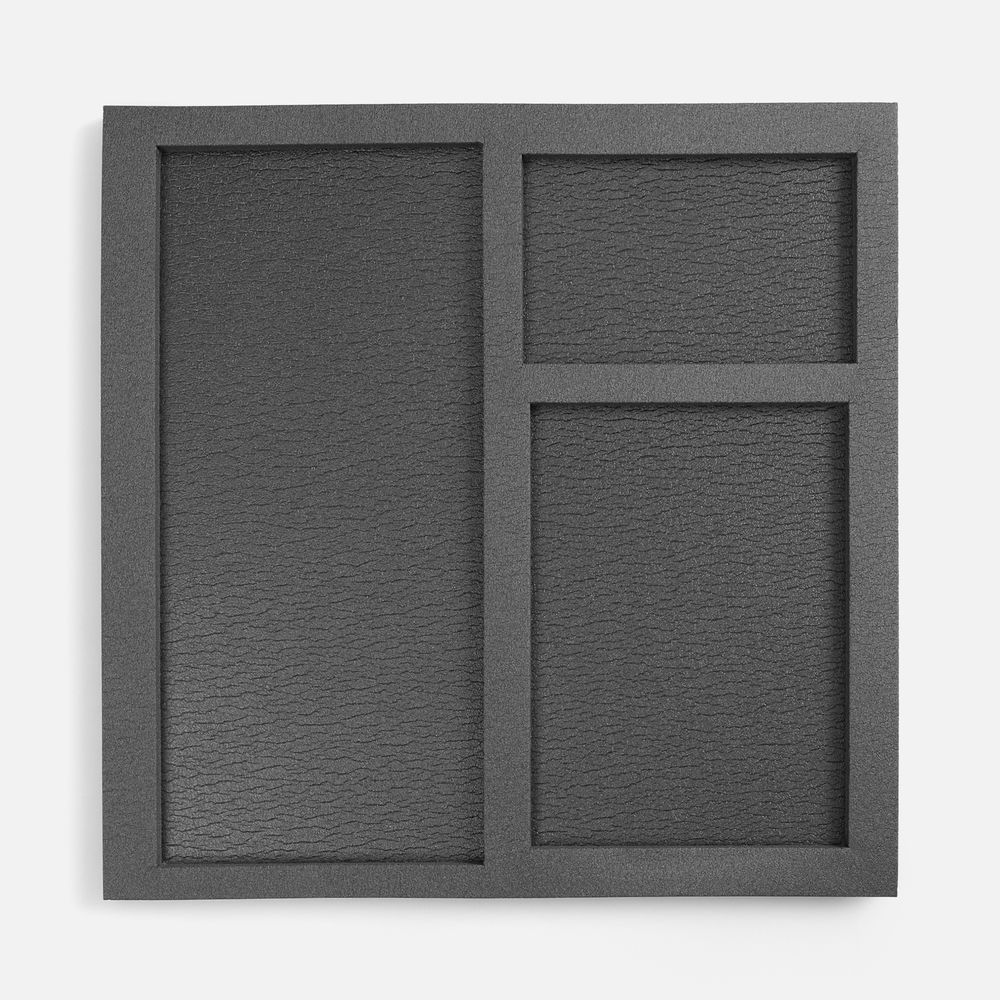 Ложемент, изготовленный из материала Izolon 500 черного цвета, представляет собой многослойную конструкцию, состоящую из нижнего слоя толщиной 5 мм и верхнего слоя толщиной 10 мм. В соответствии с утвержденным макетом, проемы для размещения предметов могут быть спроектированы как в одном, так и в обоих слоях.
