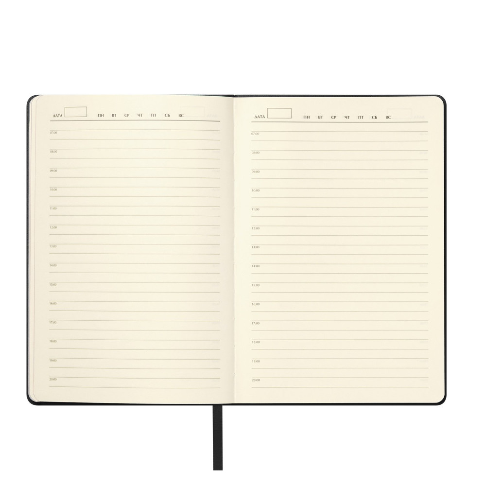 Недатированный ежедневник в гибкой обложке из высококачественной искусственной кожи сочетает в себе практичность и стильный дизайн. Текстурированная матовая поверхность с деликатным рельефом имитирует натуральную кожу, а скругленные углы обложки и блока добавляют изящества.