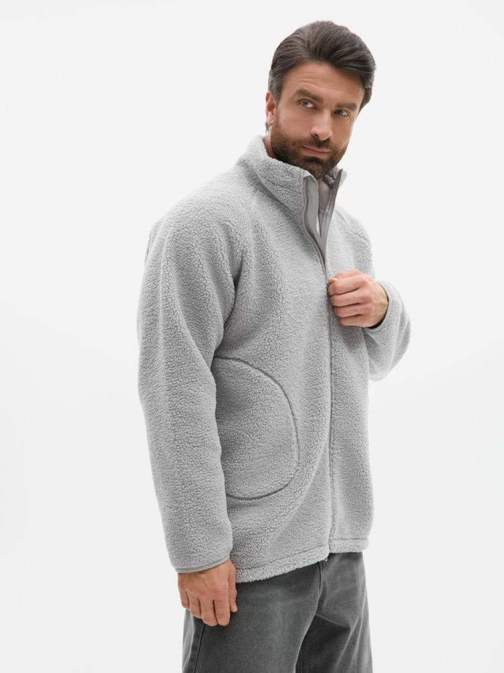 Куртка дополнена двумя боковыми карманами, и в правом предусмотрен карабин для ключей или пропуска — практичная деталь для повседневной жизни. Молния с двойным бегунком позволяет регулировать посадку и добавляет функциональности.