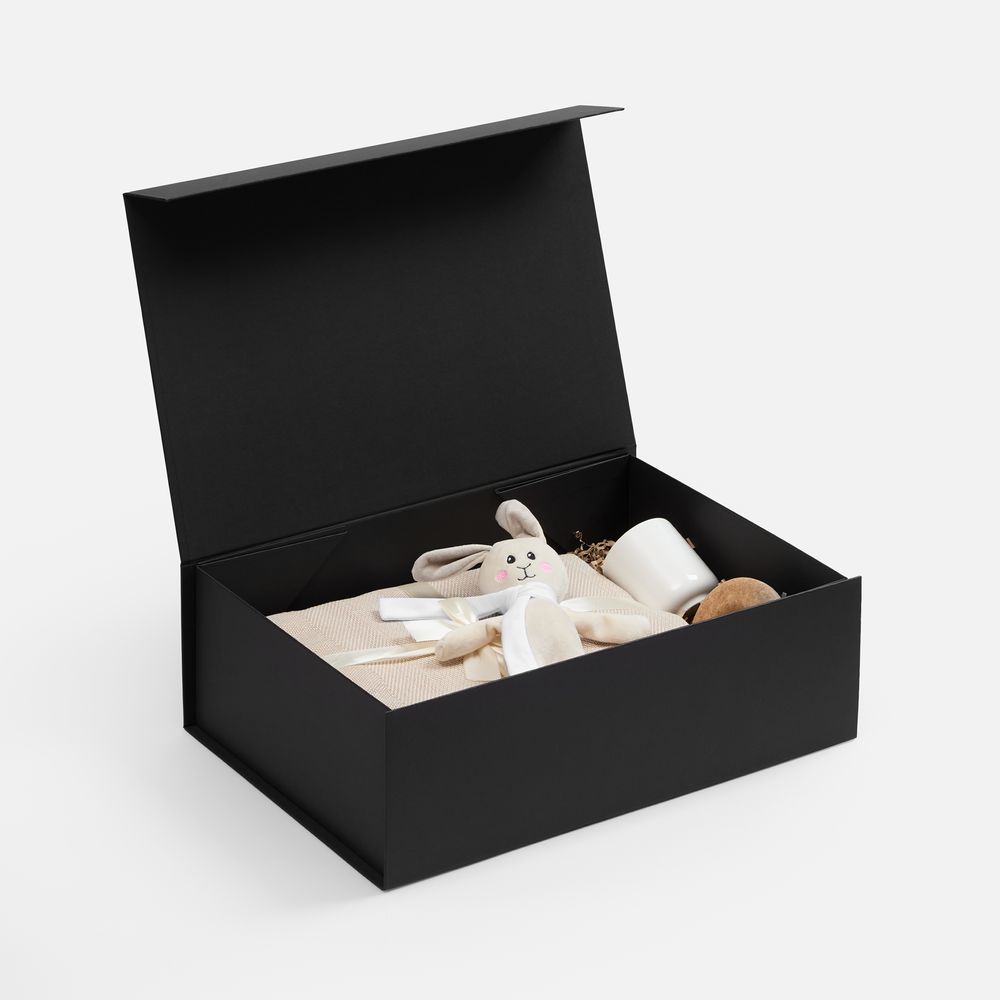 Подарочная коробка RealBig Fold изготовлена из переплетного картона, кашированного дизайнерской бумагой с крышкой на магните. Благодаря самосборной конструкции коробка легко и быстро собирается без дополнительных инструментов. Это идеальное сочетание эстетики и функциональности для упаковки ценных презентов и аксессуаров, где важны и практичность, и декоративность — для самого приятного впечатления от вручения.
