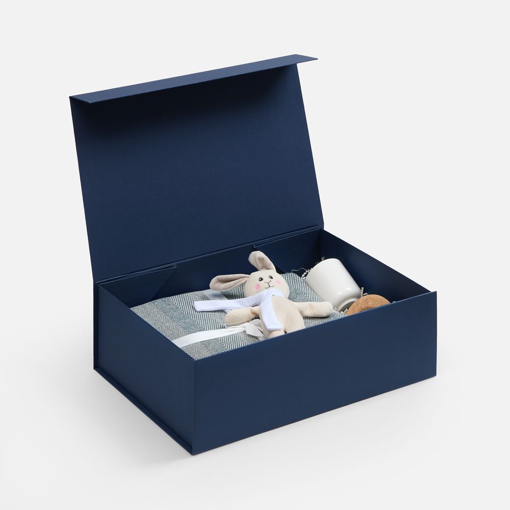 Подарочная коробка RealBig Fold изготовлена из переплетного картона, кашированного дизайнерской бумагой с крышкой на магните. Благодаря самосборной конструкции коробка легко и быстро собирается без дополнительных инструментов. Это идеальное сочетание эстетики и функциональности для упаковки ценных презентов и аксессуаров, где важны и практичность, и декоративность — для самого приятного впечатления от вручения.