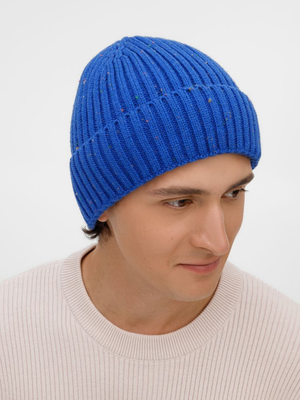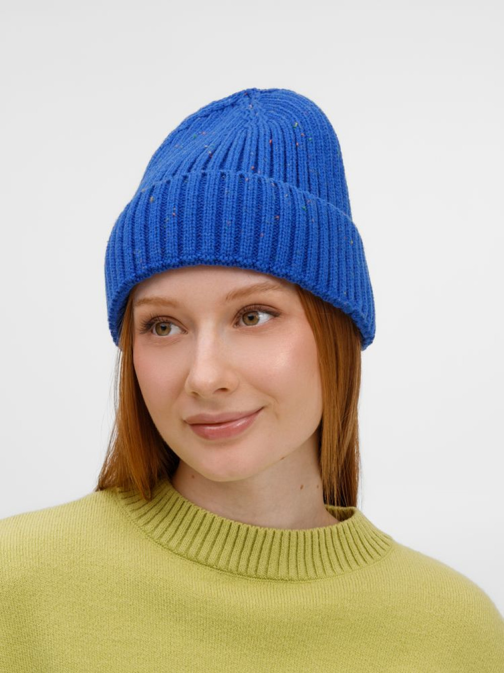 Шапка-бини с отворотом выполнена крупной резинкой из мягкой