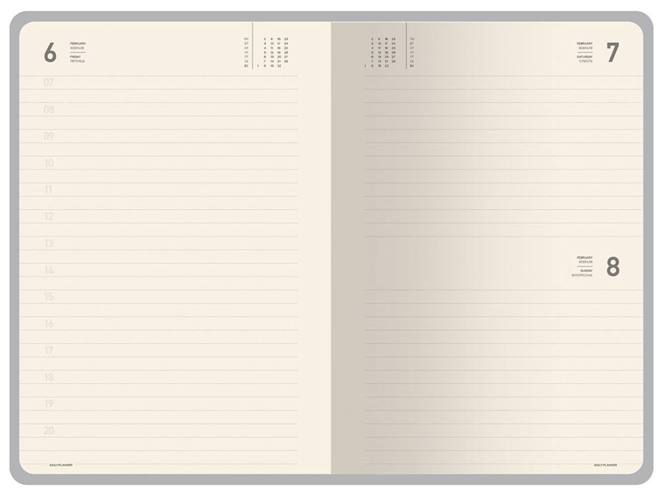 Элегантный датированный ежедневник "Megapolis Color" от Bruno Visconti идеально подходит для организации рабочего дня и ведения важных записей. Обложка из искусственной кожи с приятным на ощупь покрытием Soft Touch и обрез в тон создают гармоничный образ. Внутри – блок из бежевой бумаги плотностью 70 г/кв.м с разделами для планирования, календарем на 2026-2027 год и полезной справочной информацией. Для удобства навигации предусмотрена закладка-ляссе шириной 7 мм в цвет обложки.