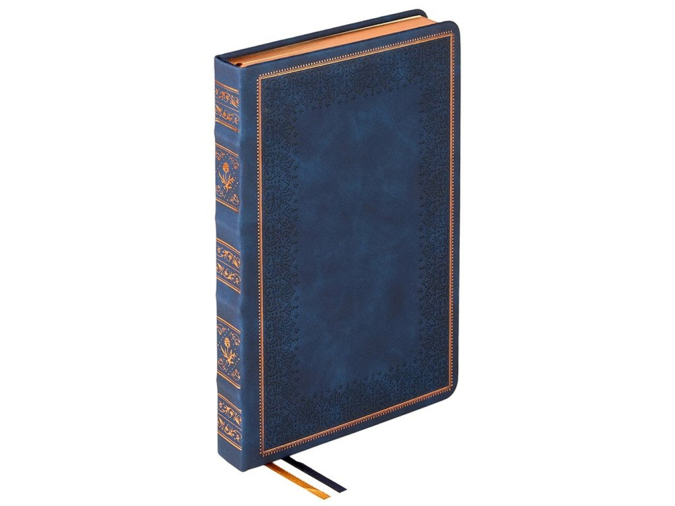 Недатированный ежедневник "Royal" формата А5 с твердой обложкой из искусственной кожи с имитацией нубука украшен художественным бронзовым и блинтовым тиснением. Внутри 256 страниц, выполненных из качественной бежевой бумаги в линейку плотностью 100 г/м². Два шелковых ляссе в цвет обреза блока и обложки облегчают навигацию по записям. Французский корешок дополнительно декорирован изящным бронзовым тиснением в виде виньеток. Скругленные углы обложки и блока подчеркивают стильный дизайн изделия, а блеск бронзового обреза дарит ежедневнику благородный и роскошный внешний вид.