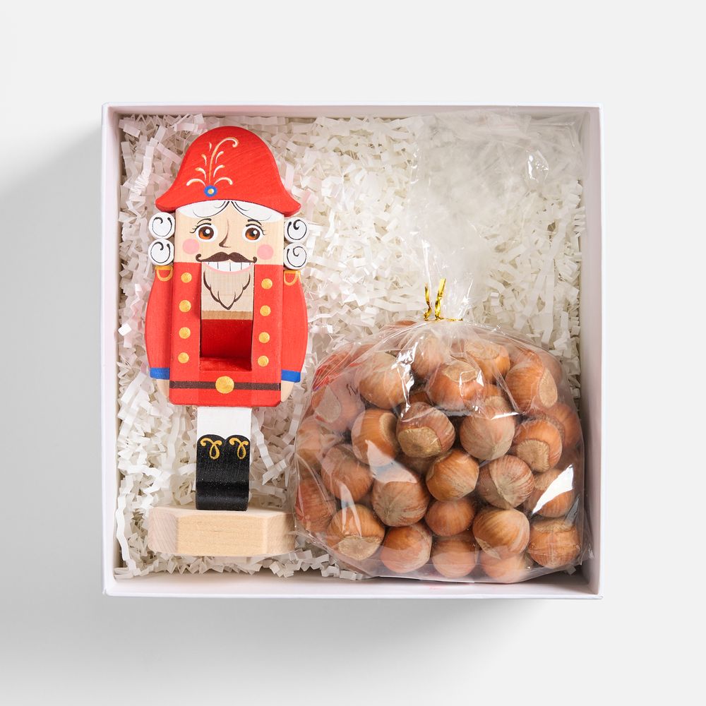 коробочке лежит настоящий орехокол — Щелкунчик, персонаж новогодней